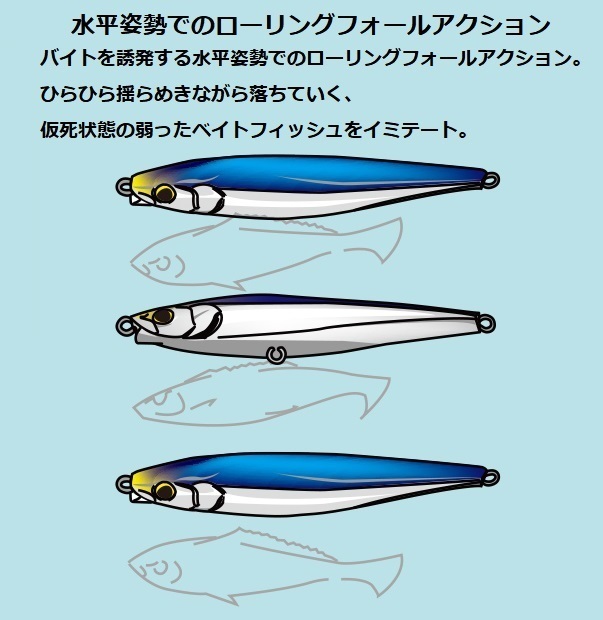 ■水平姿勢でのローリングフォールアクションで、弱ったベイトフィッシュをイミテート