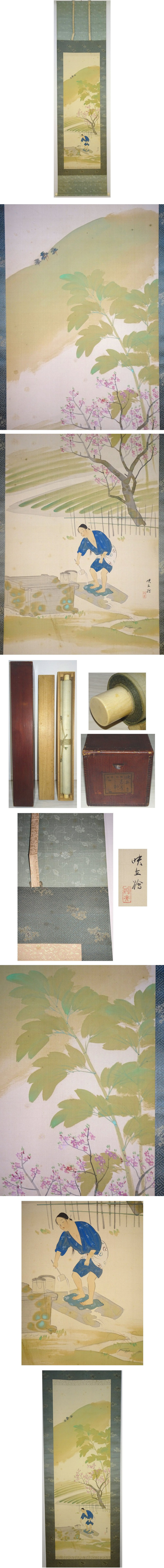 絹本 軸 真筆保証(真作) 金襴三段表装風帯つき ウブ幅 二重箱入 中身寸法126×42 薄い倉ジミ等少しあり 幅自体しっかりしています よろしくお願い致します