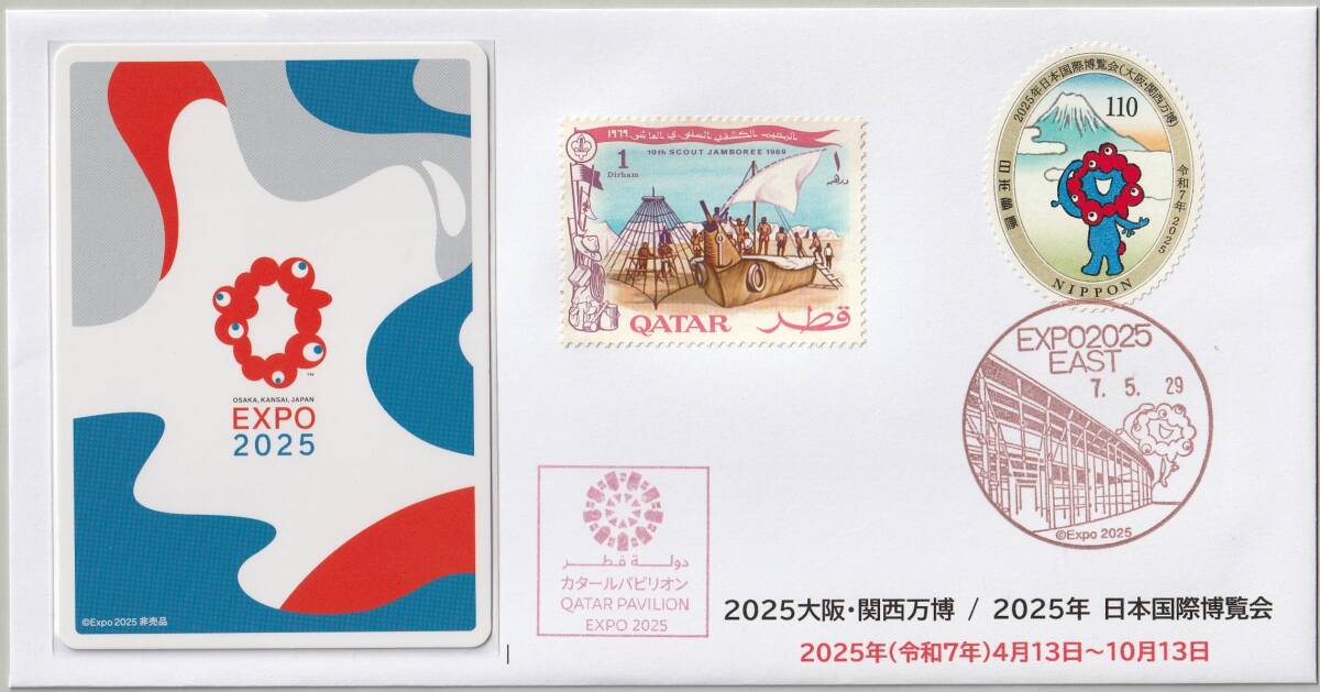 2025年 日本国際博覧会(2025大阪・関西万博)を記録するカバー(切手貼)/カタール EXPO2025 EAST郵便局/令和7年5月29日◆風景印