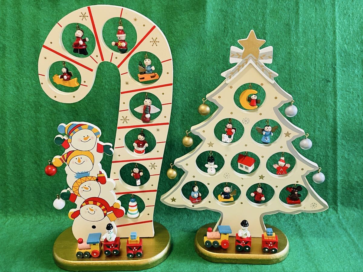 木製クリスマスツリー2点セットになります。未使用品になりますが長年自宅保管していたので、少し汚れがありますが、綺麗な状態です、撮影の為組み立てて撮影しました。御理解いただける方よろしくお願いします。素人寸法になります。