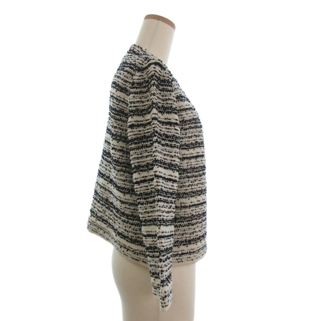 ランバン LANVIN COLLECTION 美品 カーディガン ボレロ 長袖 リボン ニット 白 ホワイト 黒 ブラック 40 レディース