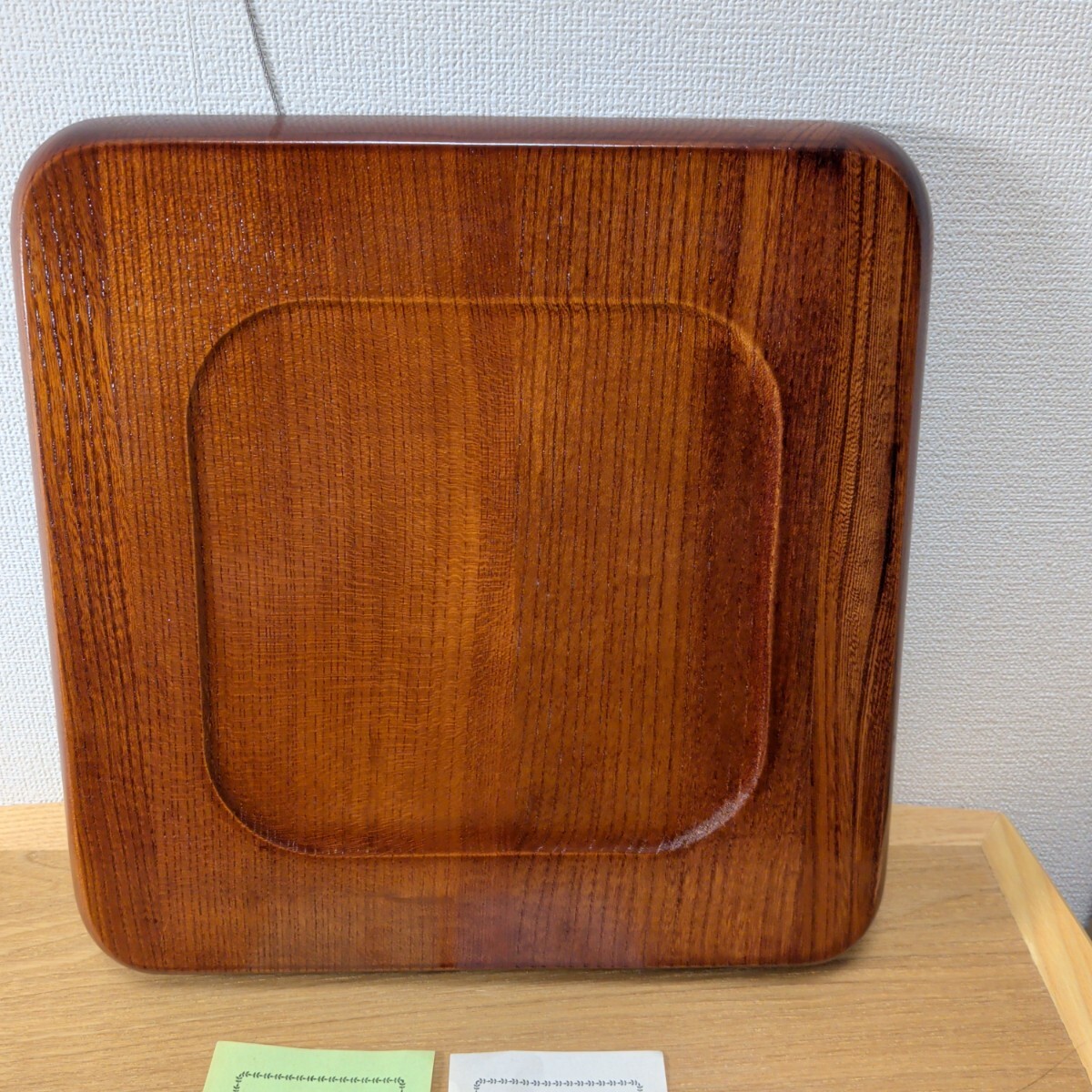 天然木製けやきの四角いくりぬきトレイ、盆、温かみのあるブラウン。