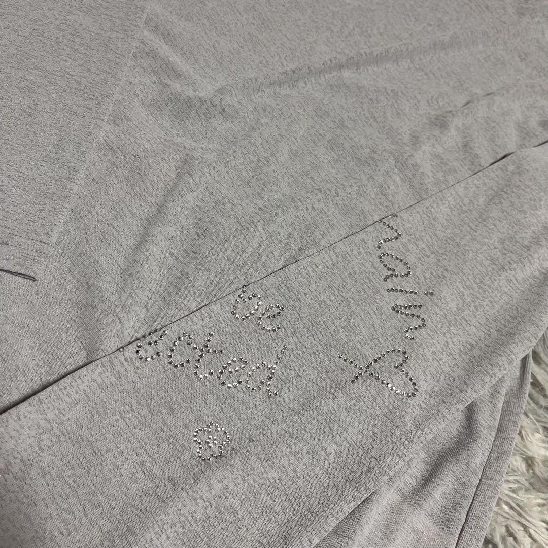 左袖には、ロゴとお花のモチーフが施されたラインストーンを散りばめ、