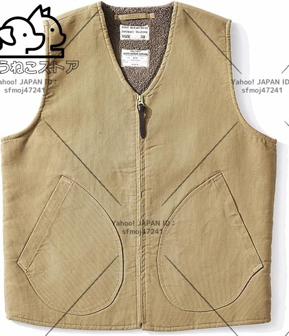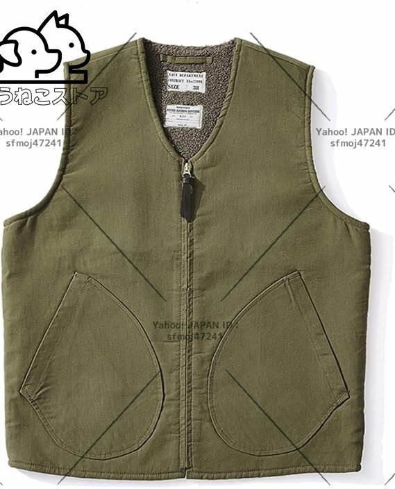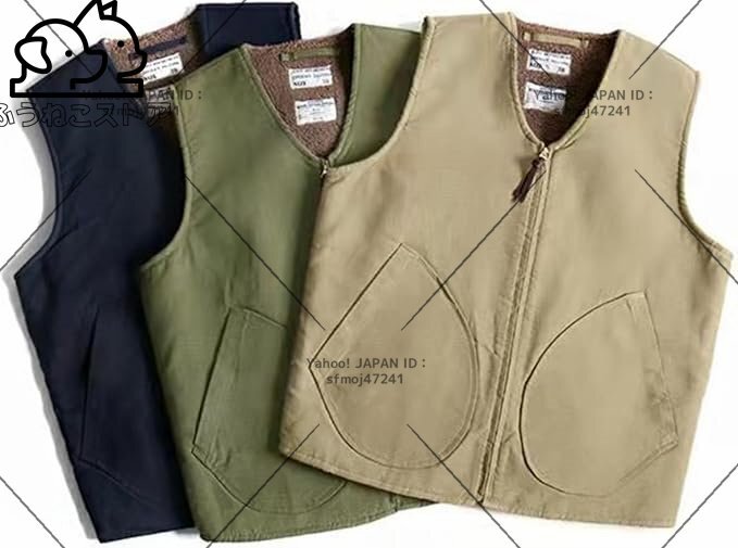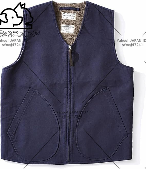 USNワーク ボア裏地付きで防寒性も抜群 ヴィンテージ復刻デッキベスト メンズ アメカジ ジレ S~XXL ネイビー
