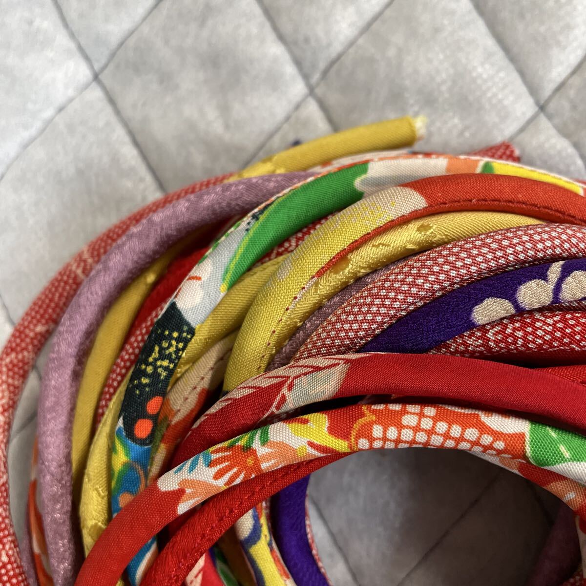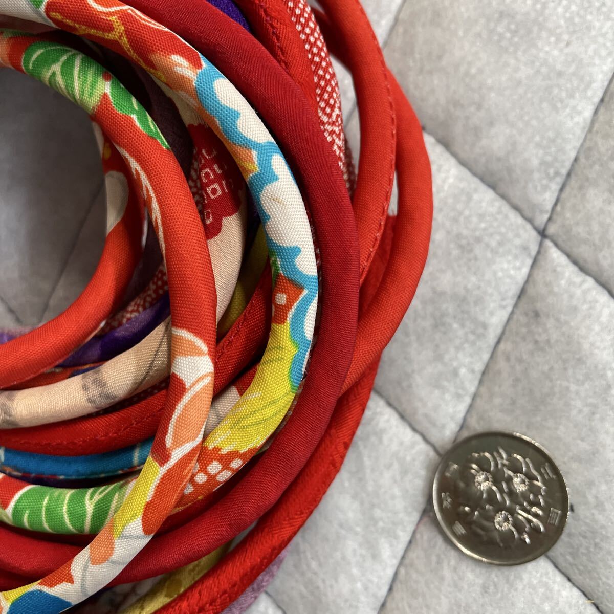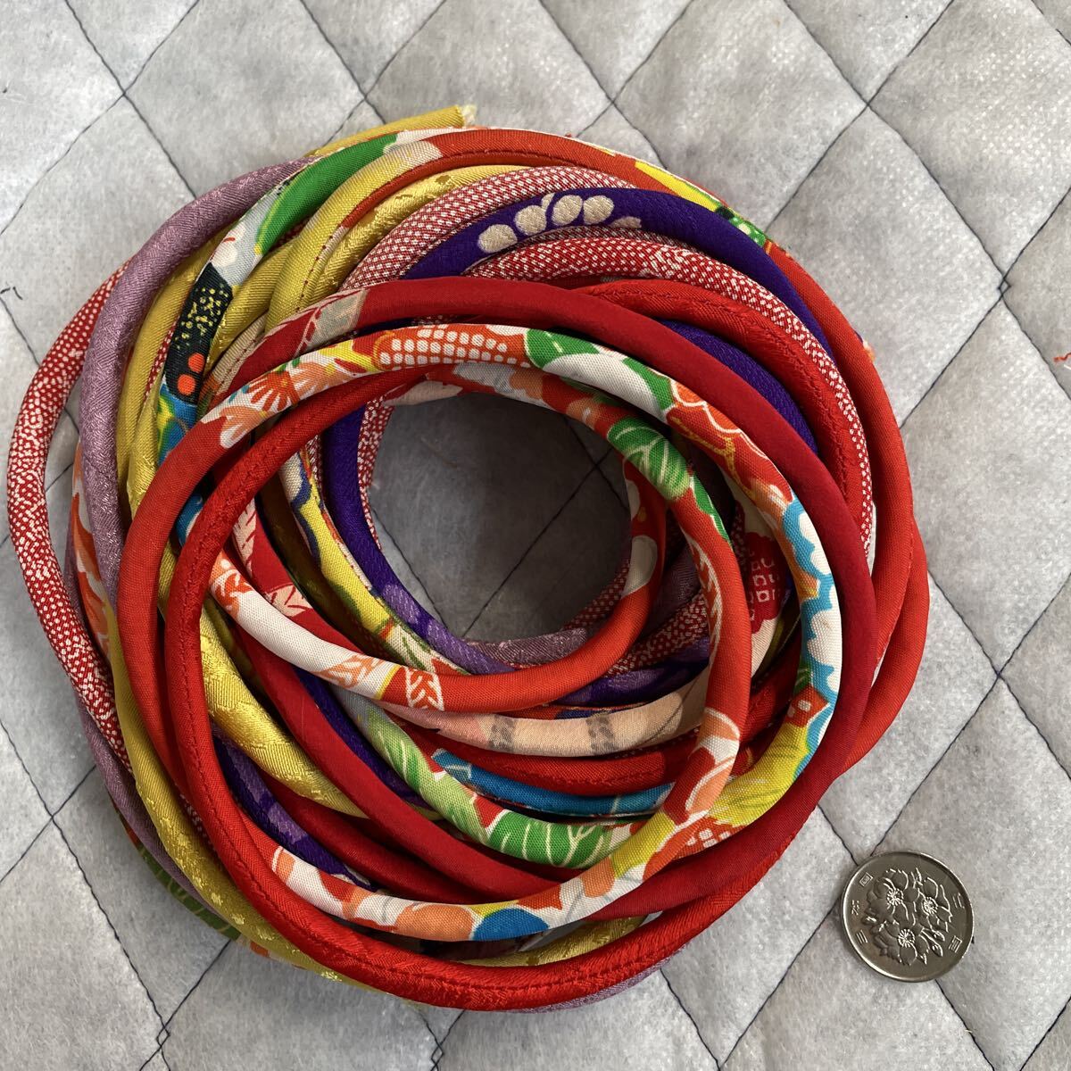 古布着物生地で制作した紐です。