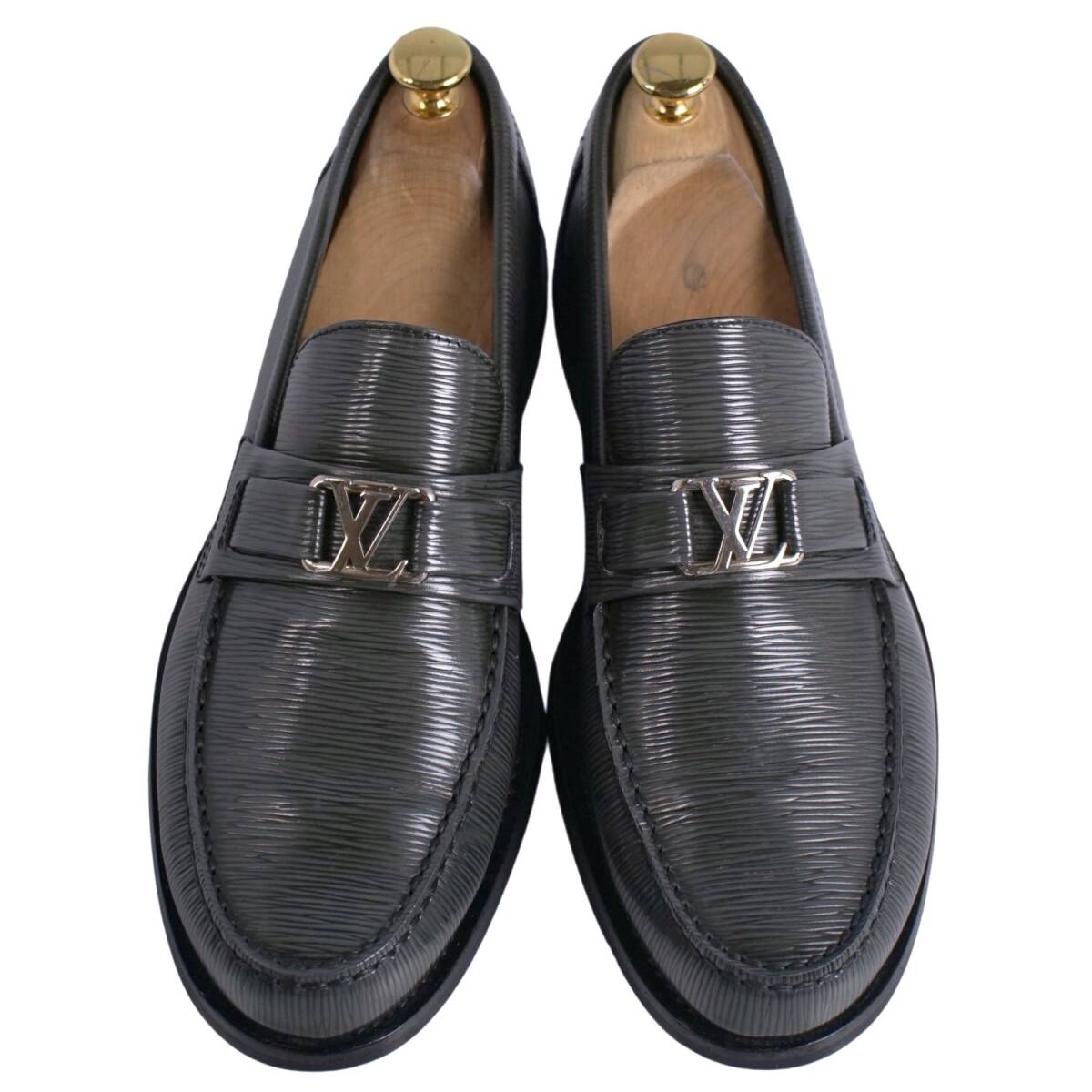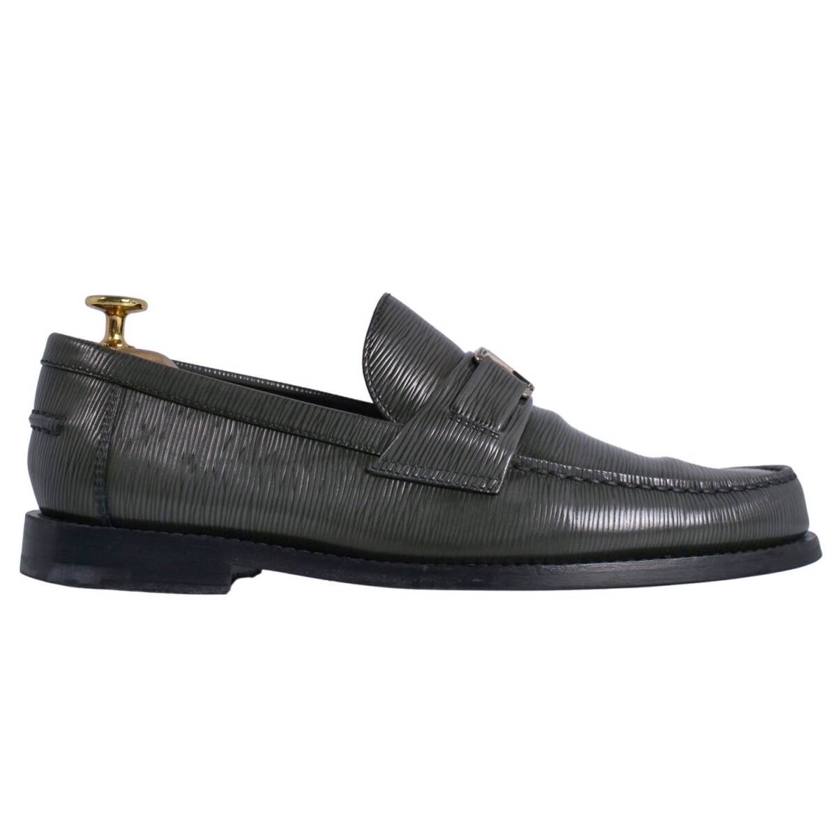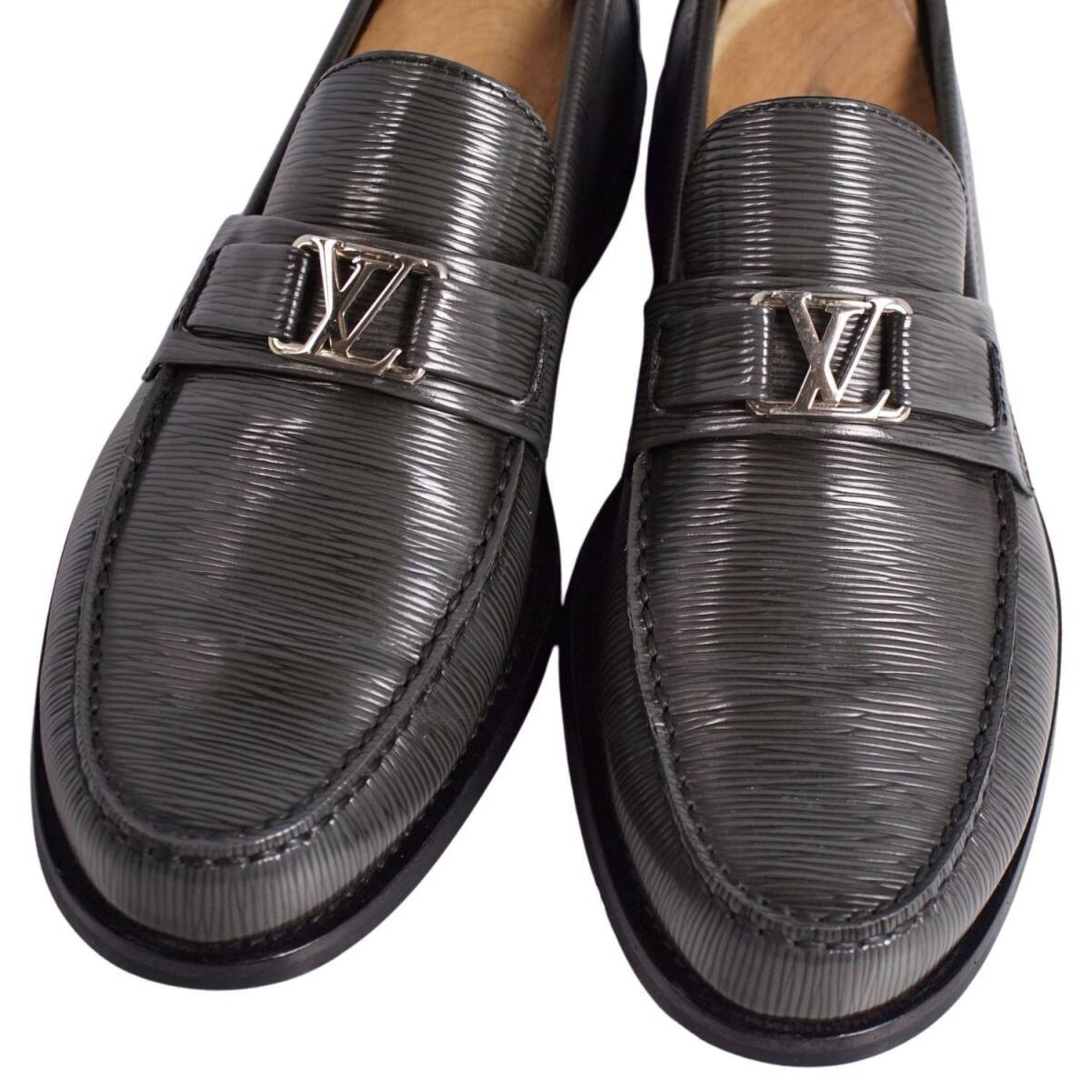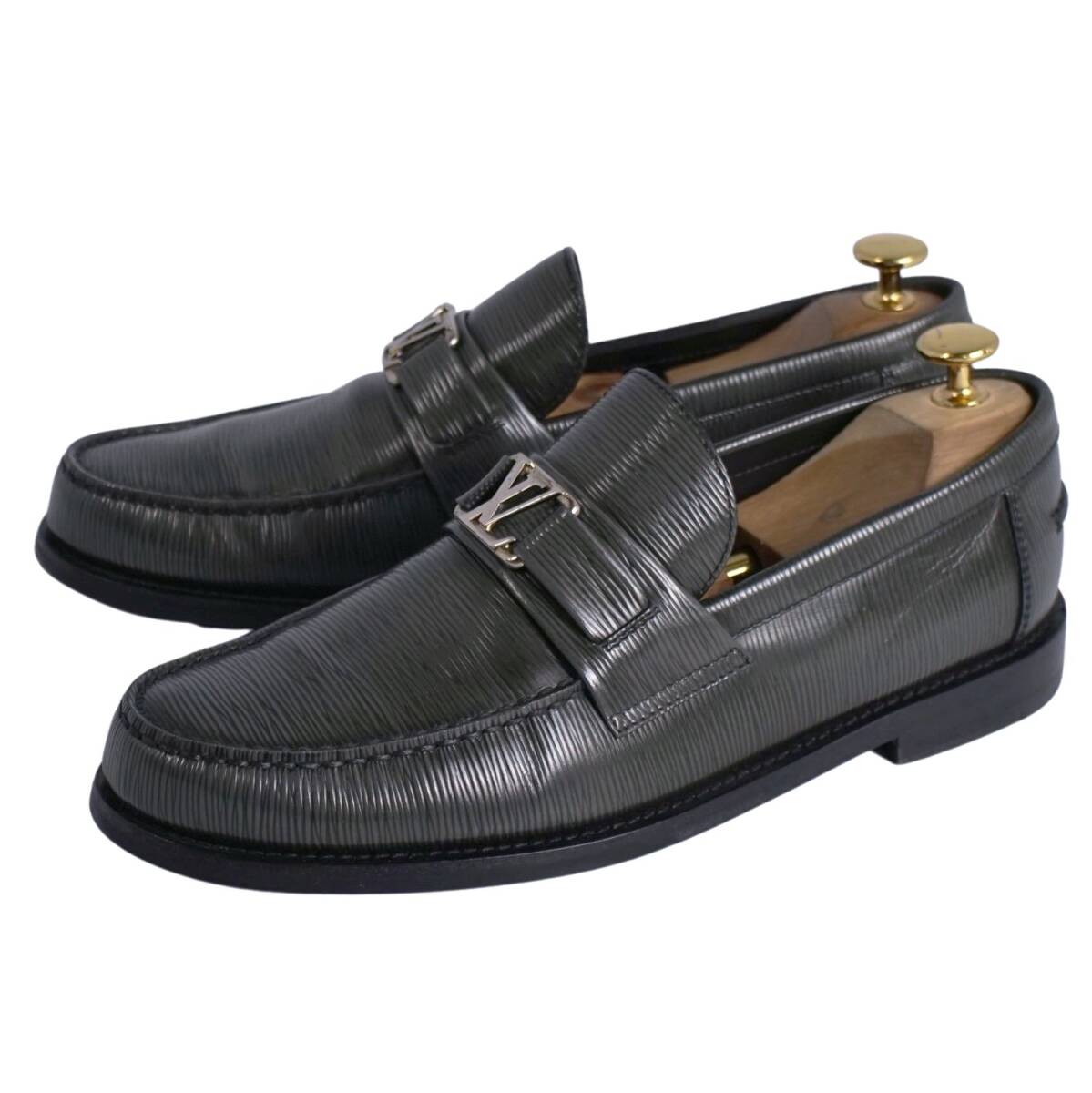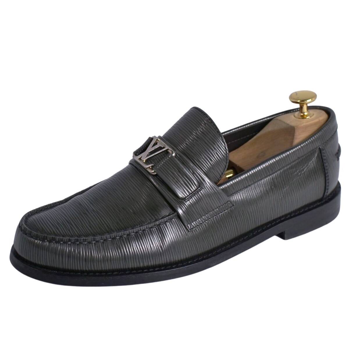 | 美品 ルイヴィトン LOUIS VUITTON ローファー モカシン メジャーライン LVロゴ金具 エピーレザー メンズ 6(25cm) グレー |