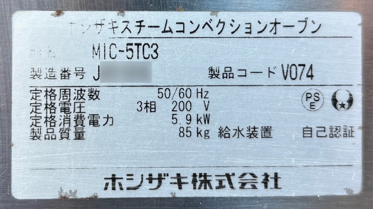 | M◆HOSHIZAKI(ホシザキ)/スチームコンベクション/クックエブリオ/MIC-5TC3/Aクラス/2019年製/3相200V/動作品 |