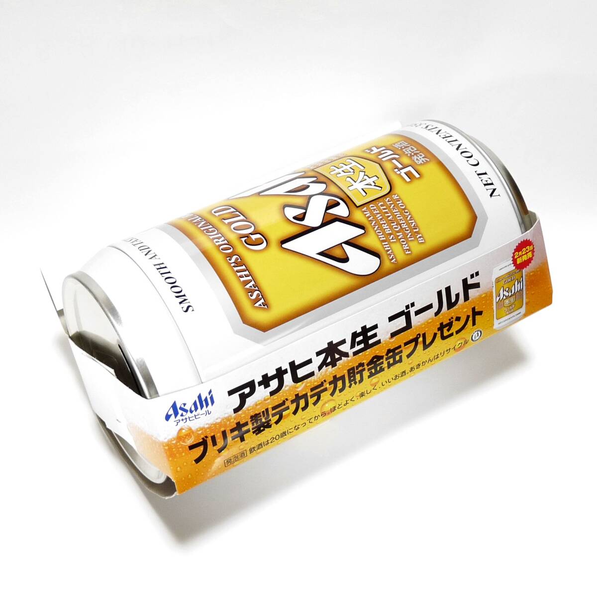 アサヒ 本生ゴールド デザインの 貯金缶(貯金箱)  です。