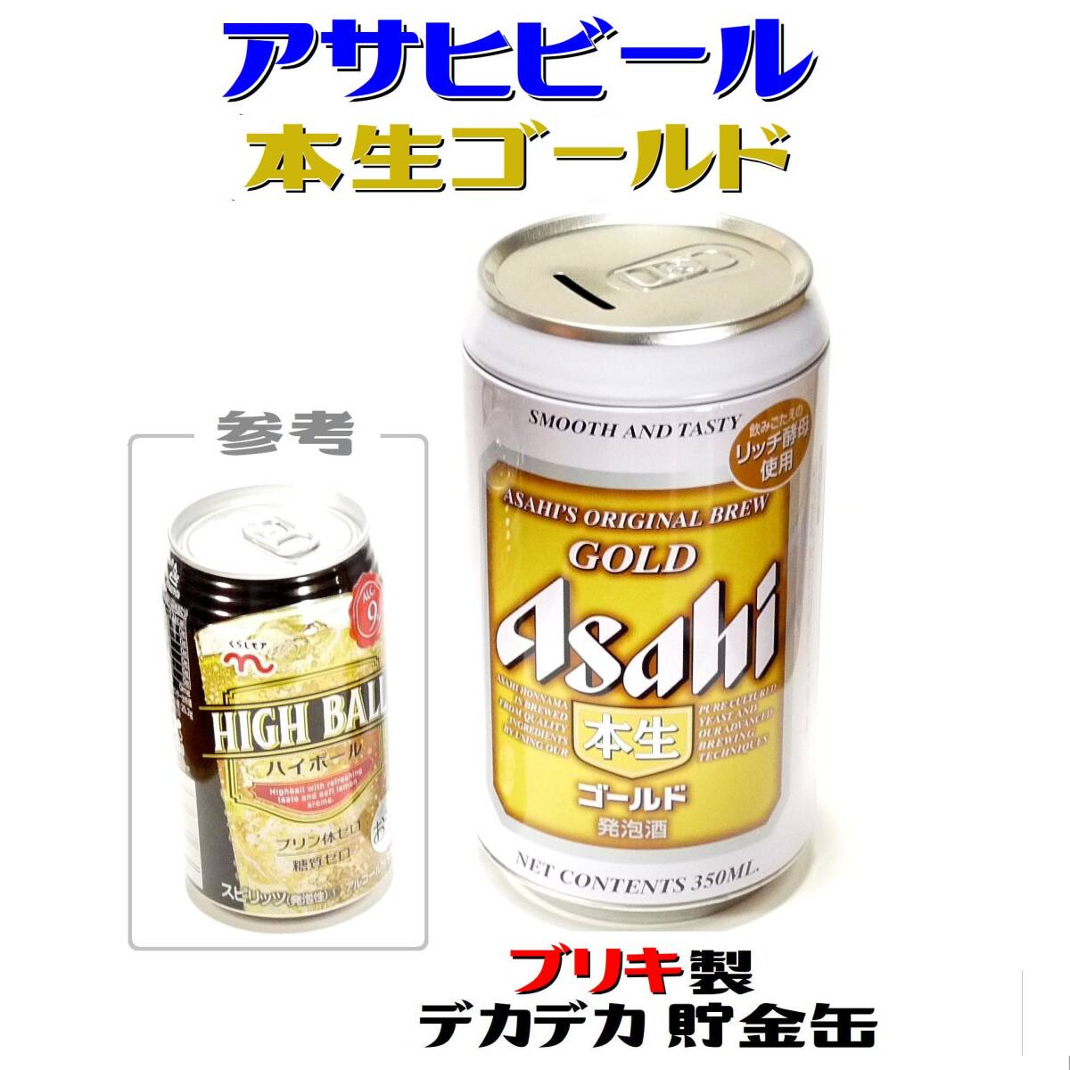 アサヒビール ●送料無料 ●非売品 デカい貯金箱 本生ゴールド ブリキ製デカデカ貯金缶 ノベルティ 珍品 店舗・ガレージのアイキャッチ用に