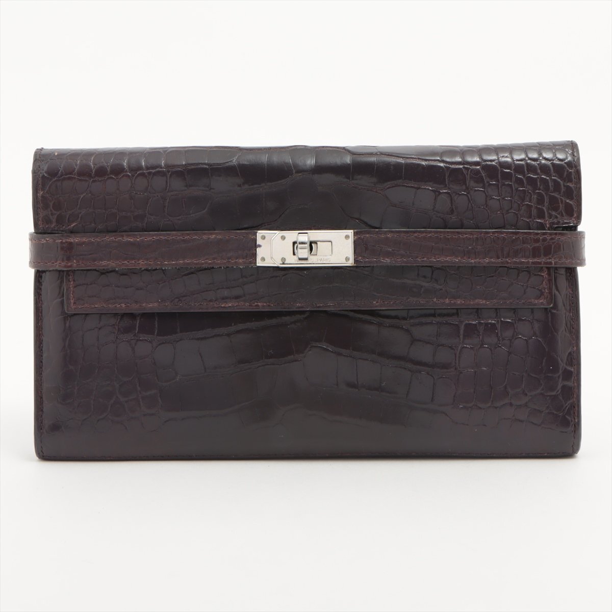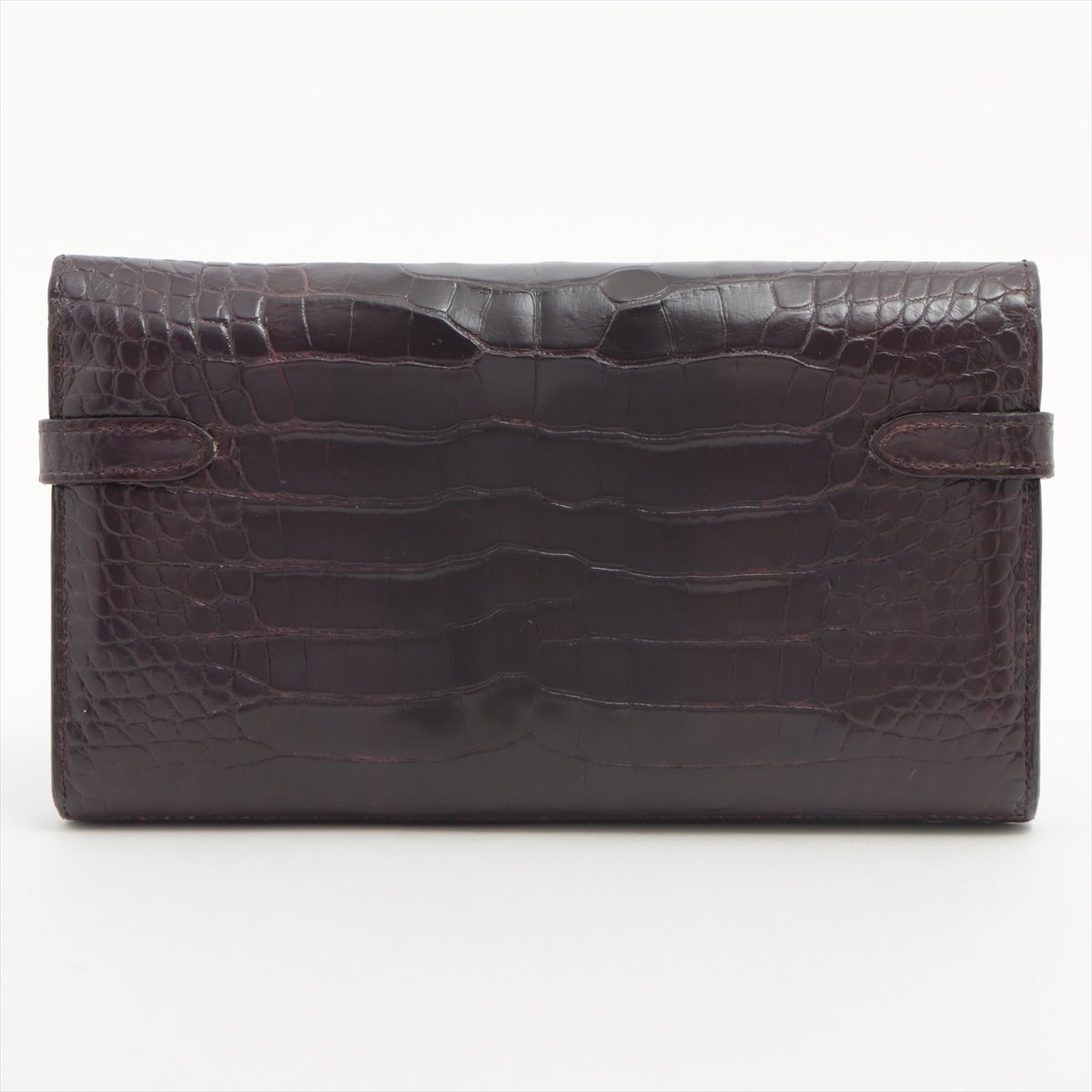 1円■美品■エルメス■□M 刻印■ケリー ウォレット■長財布■アリゲーター■クロコダイル レザー 高級 メンズ レディース MNT 1128-E40