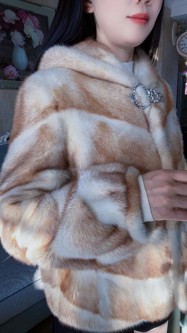| 新品限定 希少♪最高級ゴールドクロスミンクファーコート★帽子付★毛皮ファーコート | ||