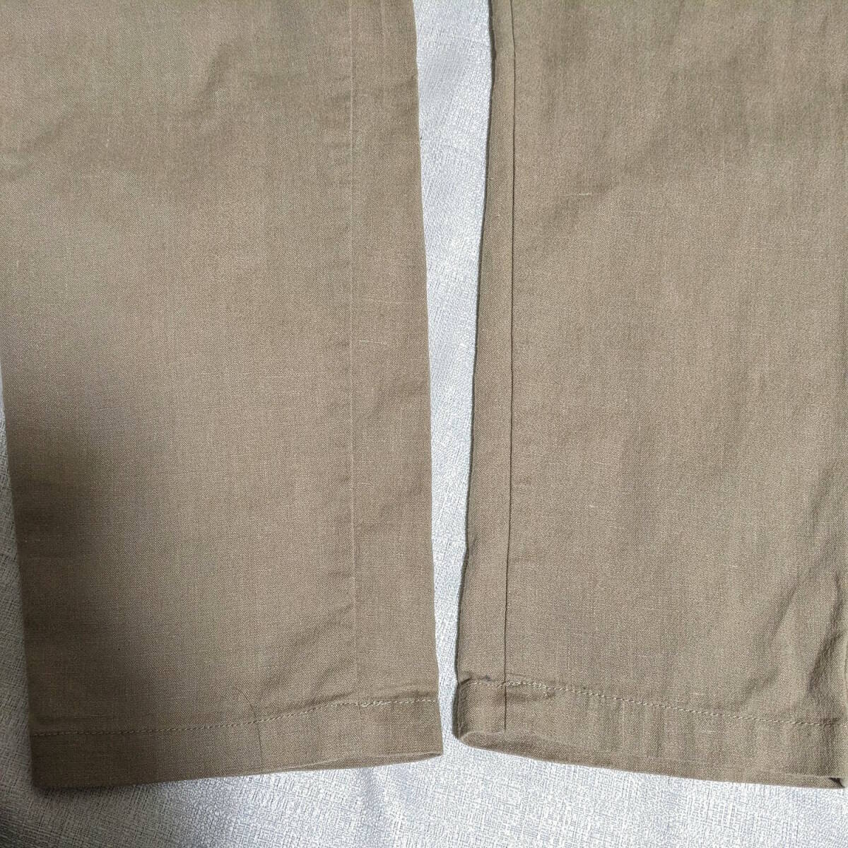【状態】裾に生地が少し擦れて白っぽくなっている箇所あり。シミ、汚れ、色褪せは見当たりません。リネンですので多少の毛羽立ちがありますが、全体的にまずまずのコンディションかと思います。