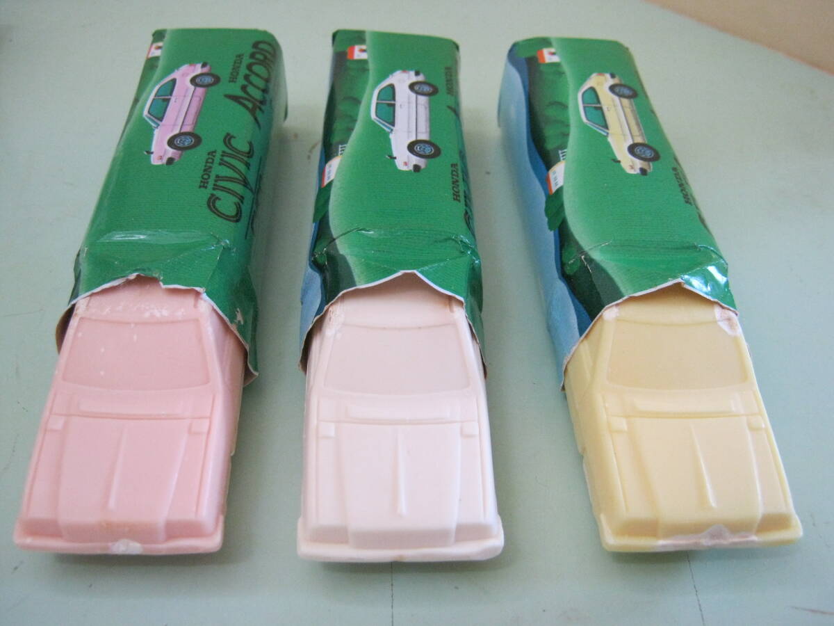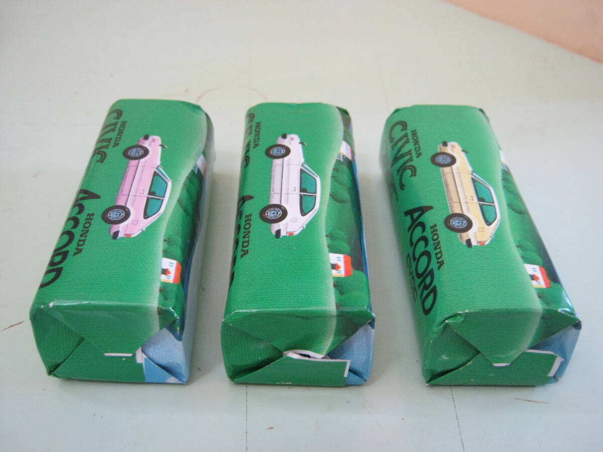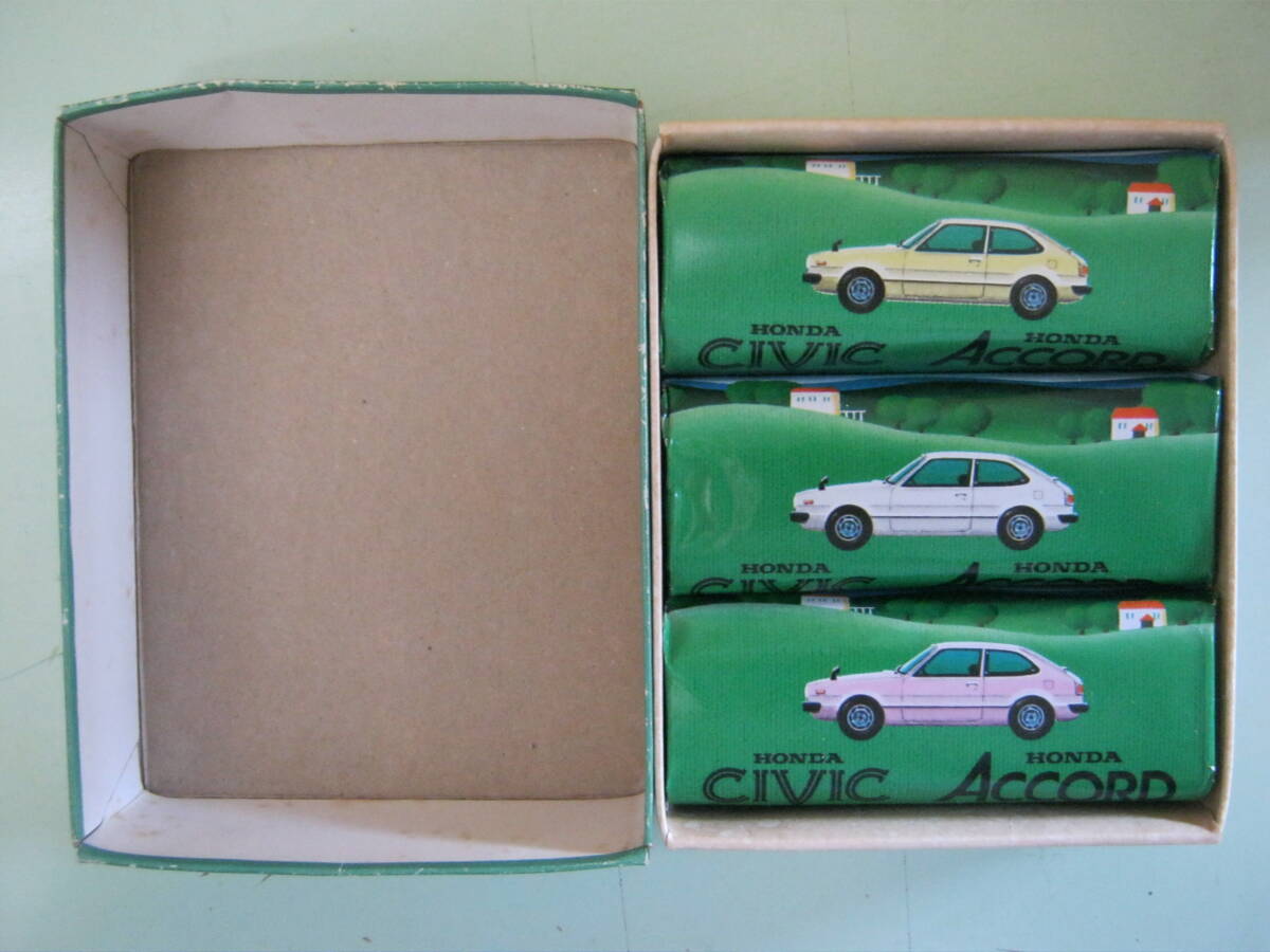 ホンダ【初代アコード 2ドアハッチバック(SJ/SM)車型石鹸(エメロン化粧石)3色3個セット未使用箱入り 1976年販促品】