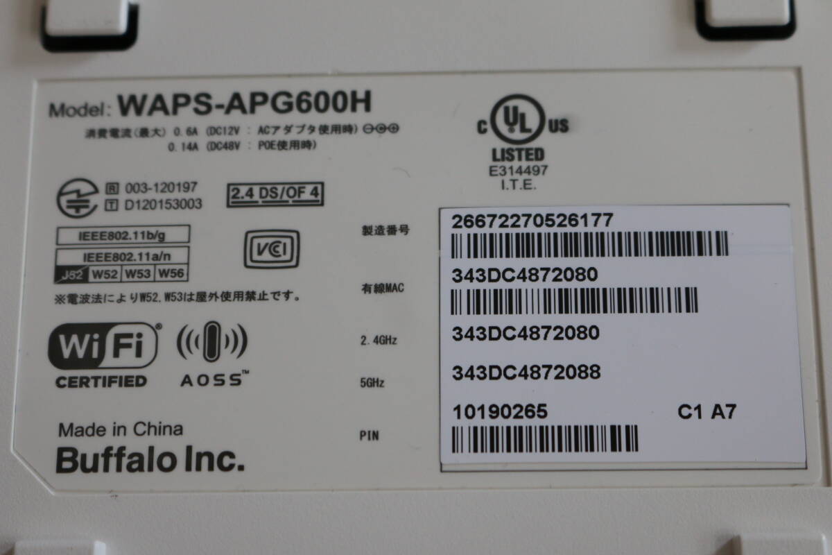 【中古品】Buffalo WAPS-APG600H 法人向け無線LANアクセスポイントPoE電源対応【AC電源、取り付けキット無し】 アンテナ付き 26672270526177