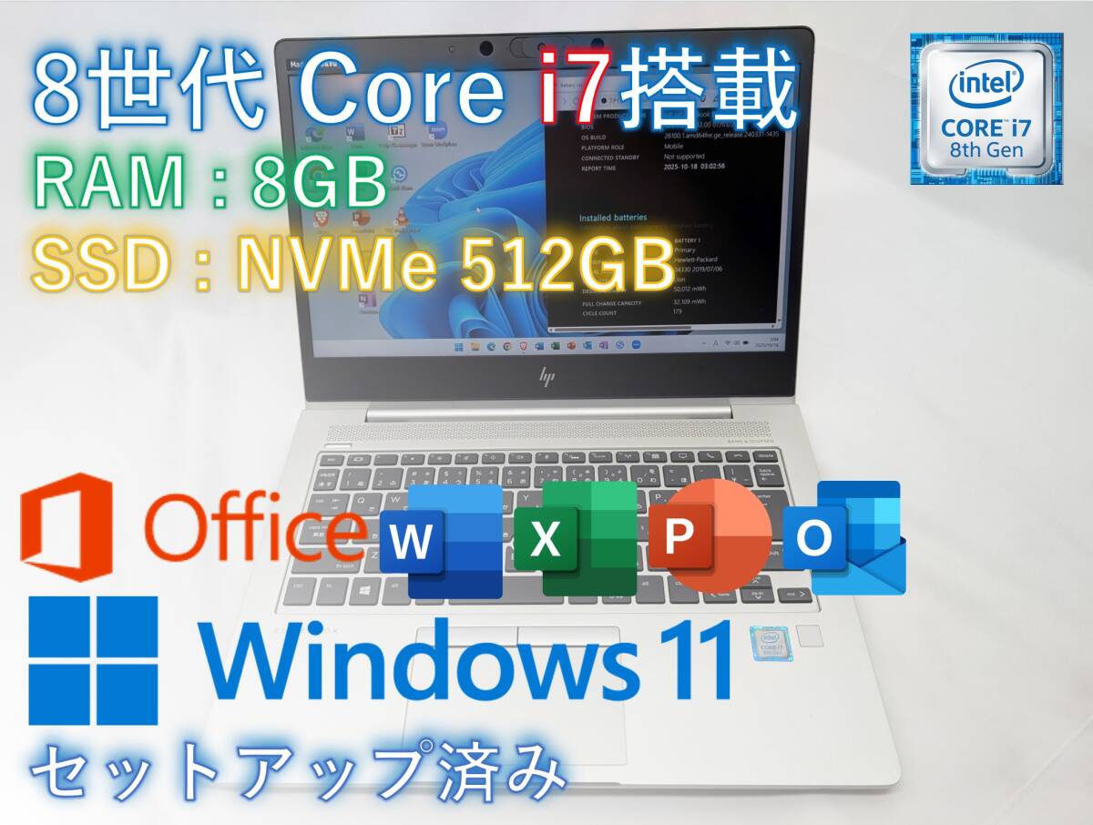 Windows11搭載 8世代 Core-i7 8565u RAM-8GB SSD-512GB Office Word Excel PowerPoint Zoom HP EliteBook 830 G6【10016】