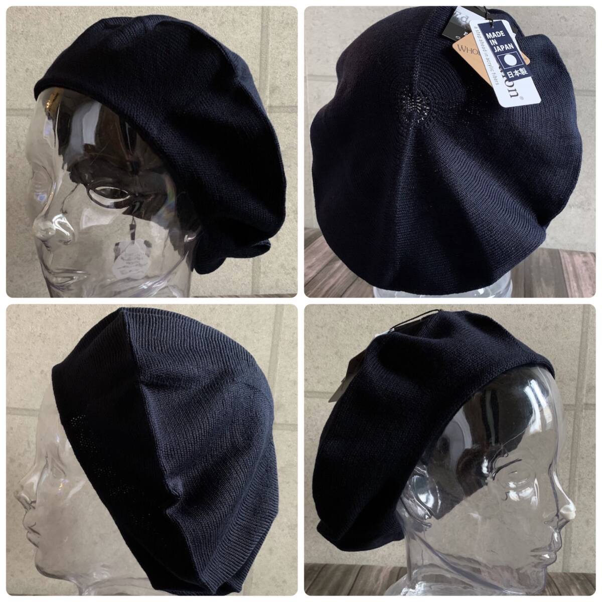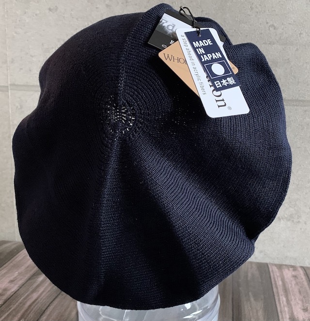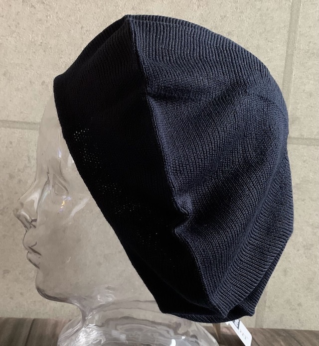 熟練の日本の職人が丁寧に仕上げました。よく聞かれるお悩みを解決するベレー1】ニットはチクチクするのが苦手2】締め付けが強すぎて、長時間かぶると頭が痛くなるこのようなお悩みも綿を50%配合し、日本の職人技術でふっくらと編み上げられたやさしい編地でストレスなし。何より感じていただきたい優しいフィット感。しっかり”伸び” ”縮み”するのに、長時間かぶっても疲れない。自慢の仕上がりです。【dralon-ドラロン-】『さらさら吸水速乾』と『さわやか防臭』どの季節でも蒸れずに快適素材感。ドイツで開発されたオールシーズン対応の機能素材です。ドラロンは特殊製法のアクリル素材で、高い吸水速乾性を発揮します。また天然系防菌防臭加工『ロンフレッシュ』によるデオドラント機能で、吸収した汗が原因で発生するニオイを抑えます。さわやかで快適な素材感を楽しんでいただけます。男女兼用● カラー:ネイビー●サイズ:L・外径 : 約30cm ・内径 : 約15.5cm