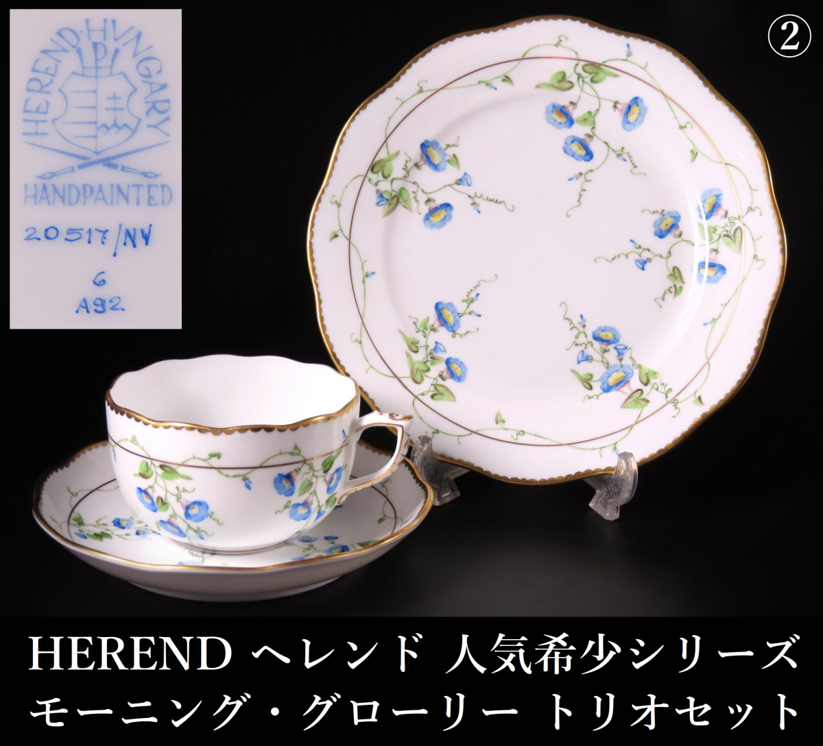 【ONE'S】HEREND ヘレンド 人気希少シリーズ モーニング・グローリー トリオセット カップ&ソーサー&プレート 珈琲碗揃 西洋美術 ② | |||