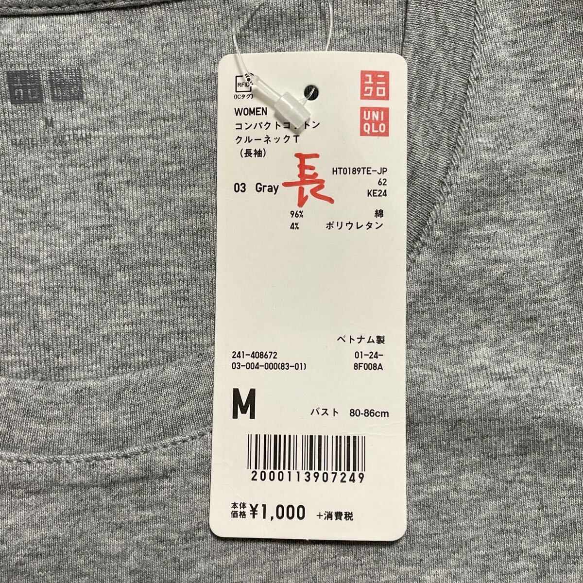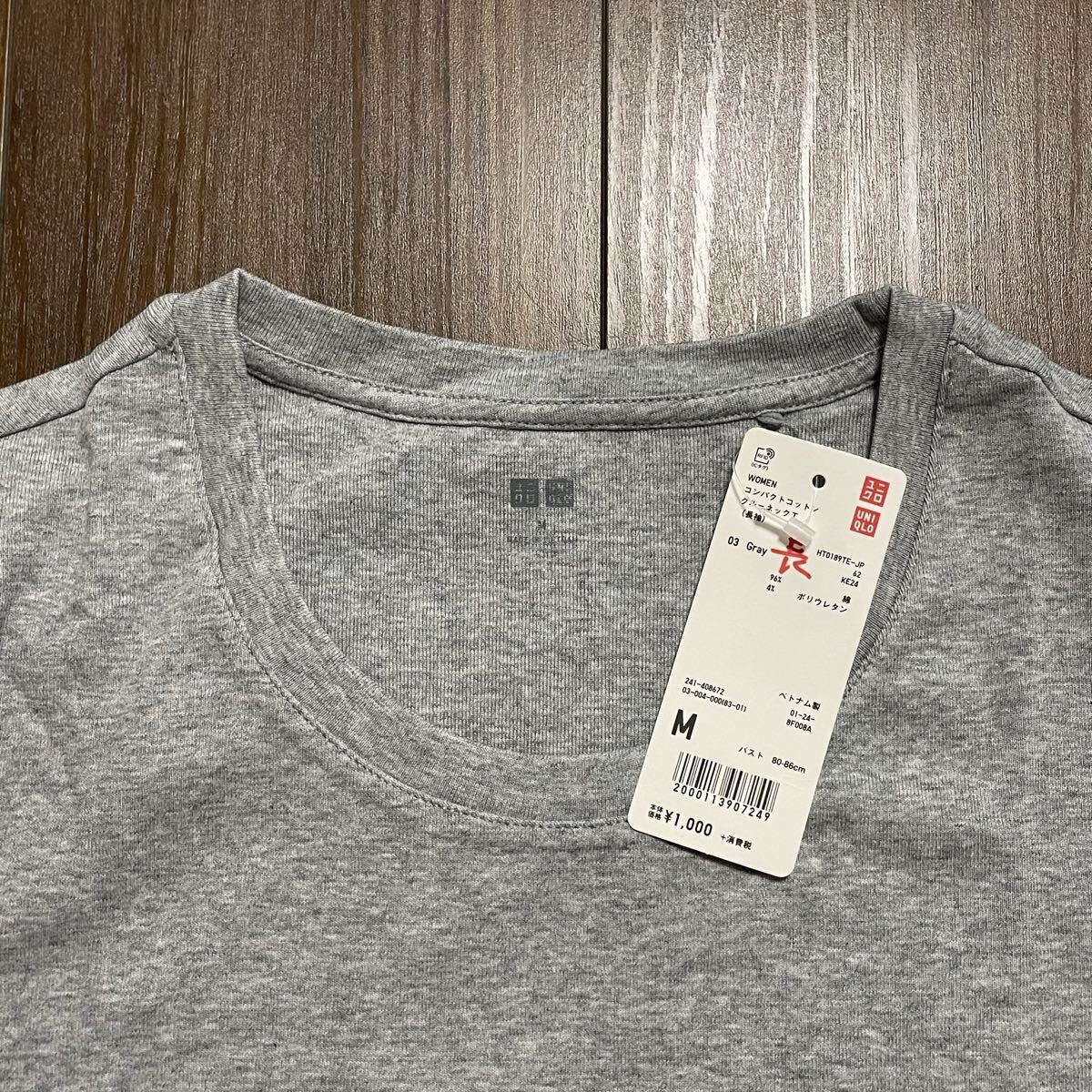 ☆未使用☆UNIQLO ユニクロ☆WOMEN☆コンパクト クルーネックT(長袖)☆長袖Tシャツ☆ロンT☆Mサイズ☆レディース☆03/Gray/グレー☆①