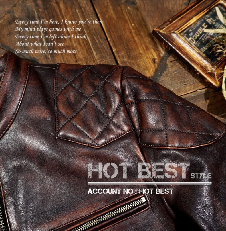 1.3mm 茶芯カウハイド 50's パテッド シングルライダース メンズ 革ジャン レザージャケットPADDED 牛革Y1221/XXXL
