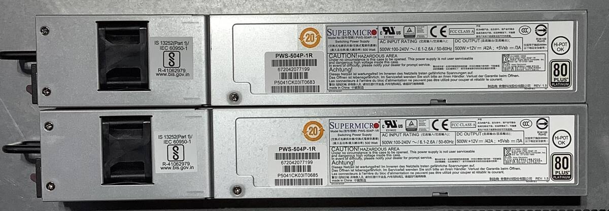 S71015311 SUPERMICRO 815-5 1点 (ヒートシンクx1基、500W電源ユニットx2基搭載)【通電OK】