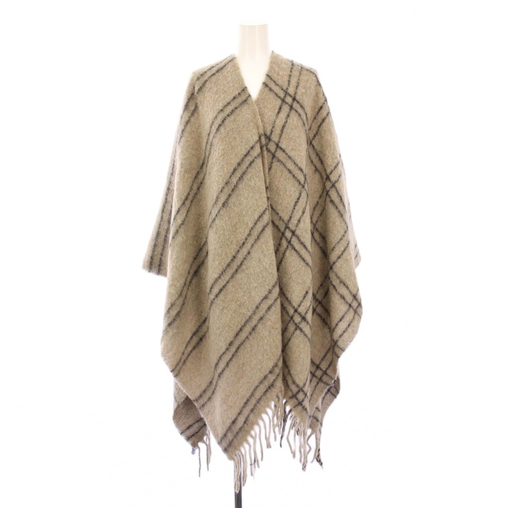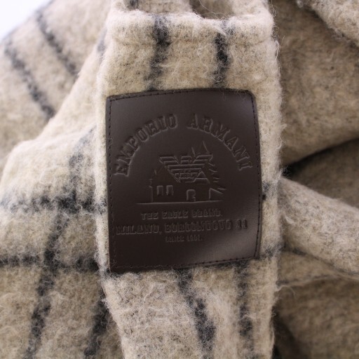 エンポリオアルマーニ EMPORIO ARMANI ストール フリンジ チェック柄 バイカラー グレージュ 黒 ブラック /BB レディース
