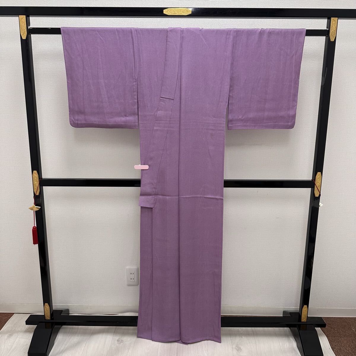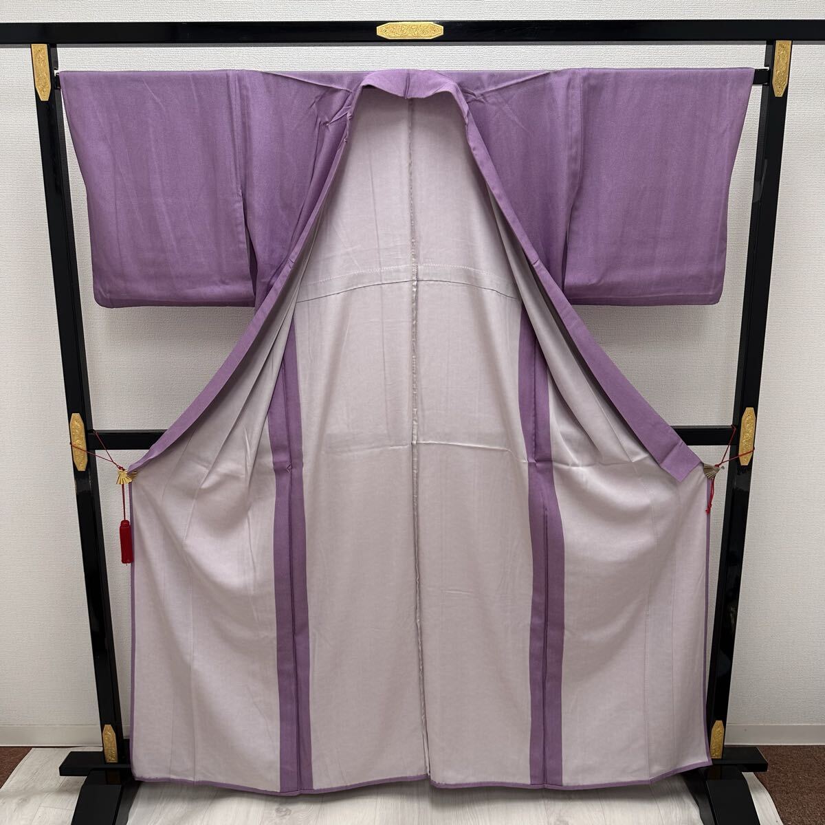 江戸小紋 鮫小紋 単衣仕立て 上品な紫 着物 正絹 バチ衿 Q-059