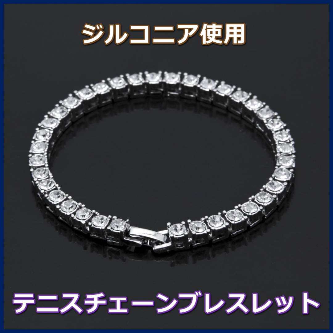 テニスチェーン ブレスレット ジルコニア CZダイヤ ラッパー系 シルバー
