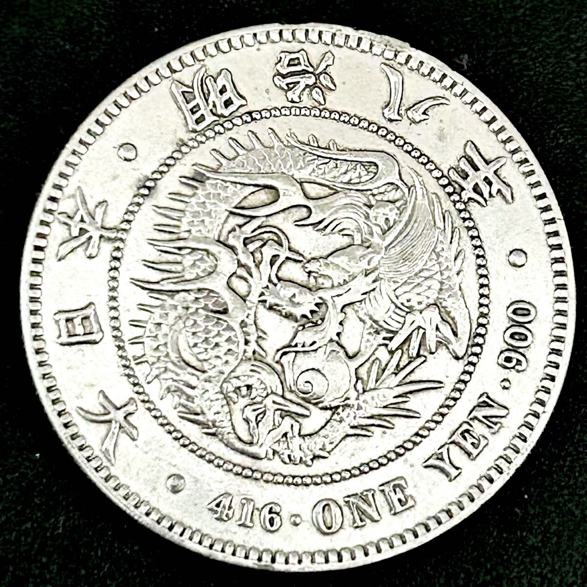 銀貨 一圓 新一円銀貨 明治8年 荘印あり 大日本 硬貨 古銭 貿易銀 コイン 竜 蔵品 骨董品 84