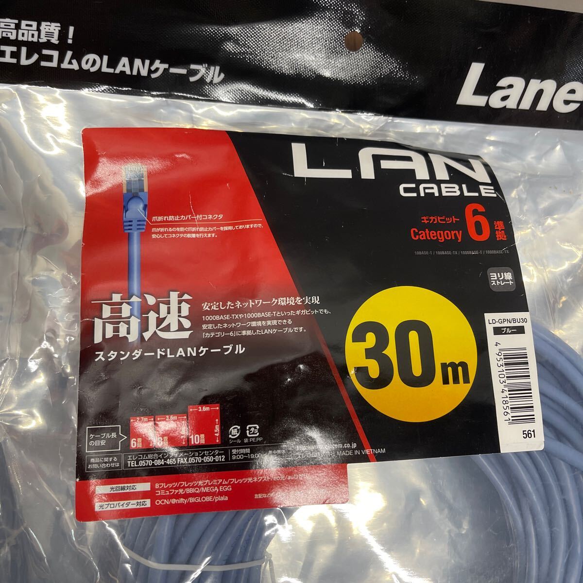 「2FU11」新品未開封 Cat6準拠LANケーブル スタンダードタイプ 30.0m ギガビット・イーサネット LD-GPN/BU30 新品未開封(240913)