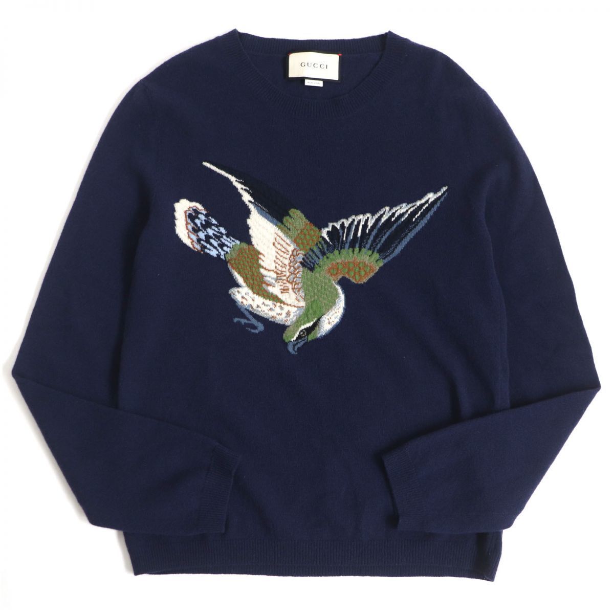 GUCCI/グッチ 鳥 ウール100% クルーネック 薄手 長袖ニット/セーター