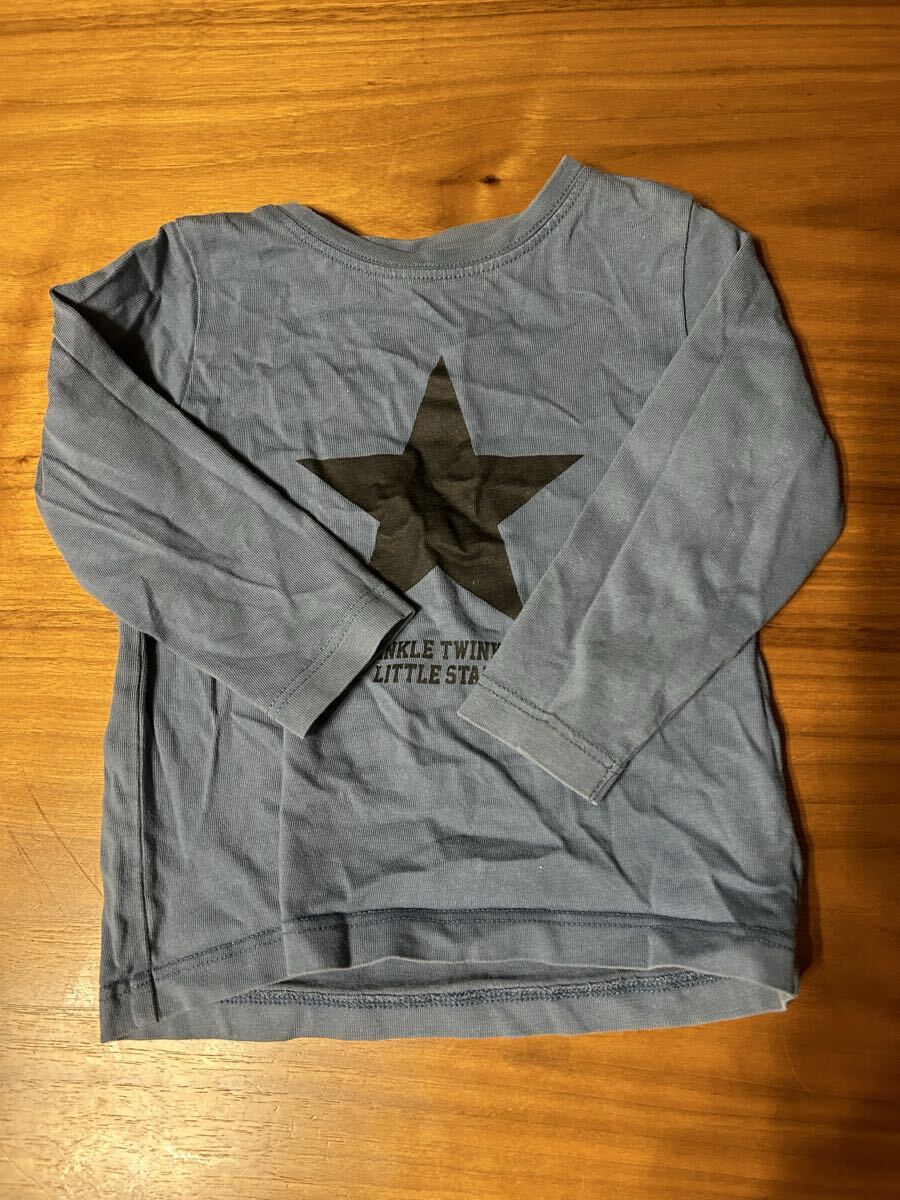 キッズ用の長袖Tシャツです。前面に大きな星のプリントがあり、カジュアルなデザインです。着用に伴う多少の色褪せや使用感があります。