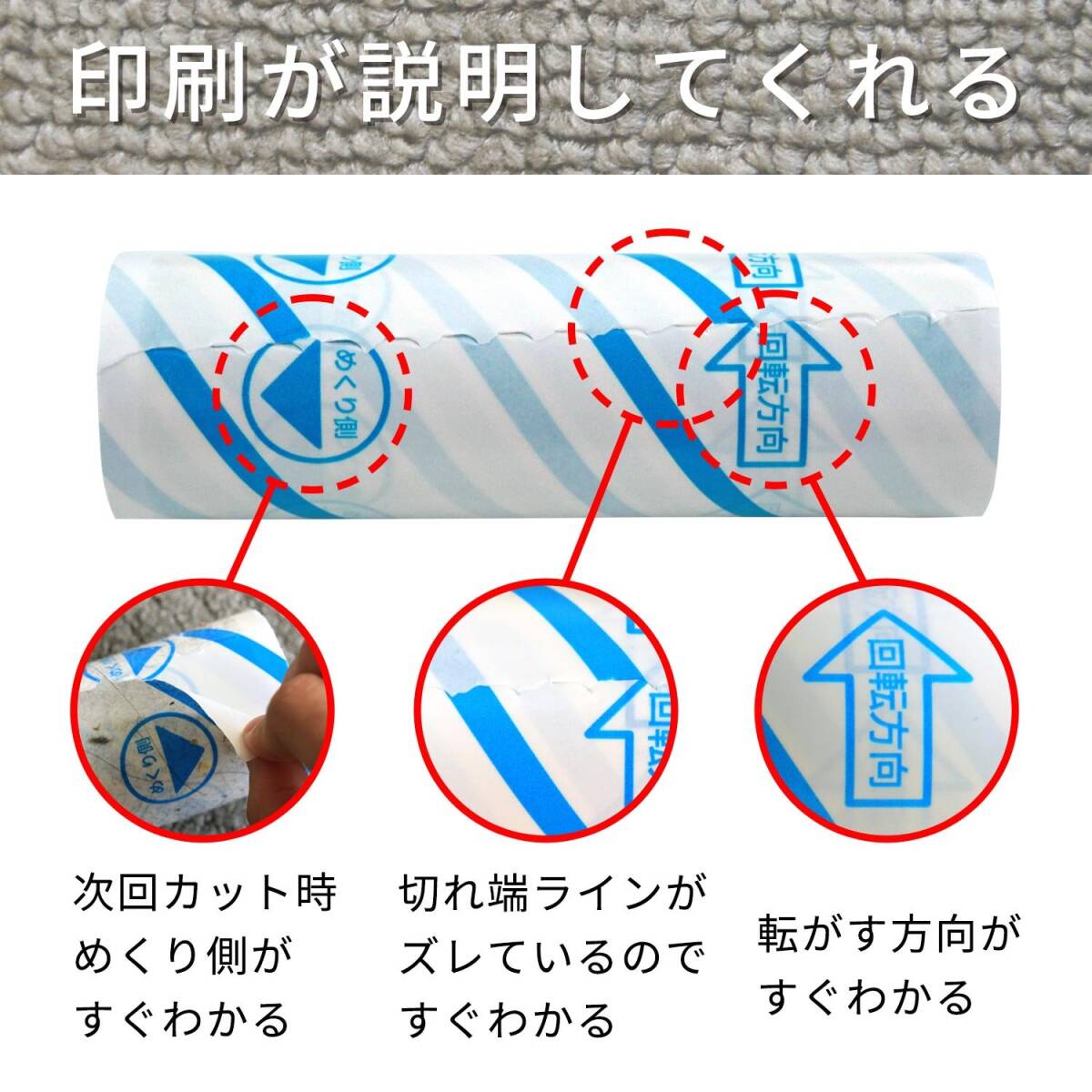 説明 商品紹介 ●イライラ解消。スパっと切れるスゴ技ななめカット。 ●「うまく切れない」「めくり口が見つからない」そんな不満を解消したカーペットクリーナーです。 ●めくり口がわかりやすい【めくり側お知らせ矢印】と【切れ端まるわかりライン】が印刷されています。 ●転がす方向がわかりやすい【回転方向矢印マーク】付き。 ●カットが簡単。ひっぱるだけでスパっと切れる【斜めミシン目】です。 ●各社共通サイズ。70周巻です。 ●フローリング、クッションフロア、畳などの平滑面に使用すると、テープが貼りつきますので使用しないでください。