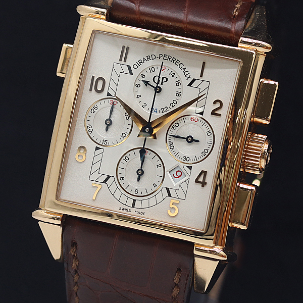 1円 保/箱付 稼働 美品 ジラールペルゴ 25975 302 18K/750 110.6g ホワイト文字盤 AT/自動巻 メンズ腕時計 0061611 10ERT KTU ABC