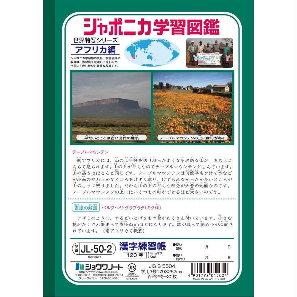 小学生のノートと言えば学習帳 ジャポニカ。 小学3~6年生向け、漢字練習帳120字。 学習帳 ジャポニカとは ・変わらない安心と信頼。 ・1970年の発売以来、子どもたちに愛され続けてきた学習帳 ジャポニカ。 使う子供たちのことを考えた工夫がいっぱい 1.表紙は世界に一枚しかない貴重なオリジナル写真。 2.裏表紙は、楽しい学習図鑑。 3.ノートの最初と最後に、楽しくてためになる学習百科付き。4.科学データに基づく書きやすい罫色。 5.ノートの紙は鉛筆で書きやすいオリジナルの紙を使用。 6.ベルマーク運動参加商品。 7.日本PTA全国協議会推薦商品