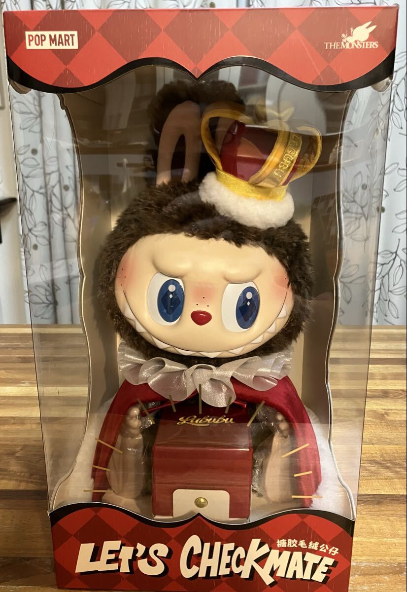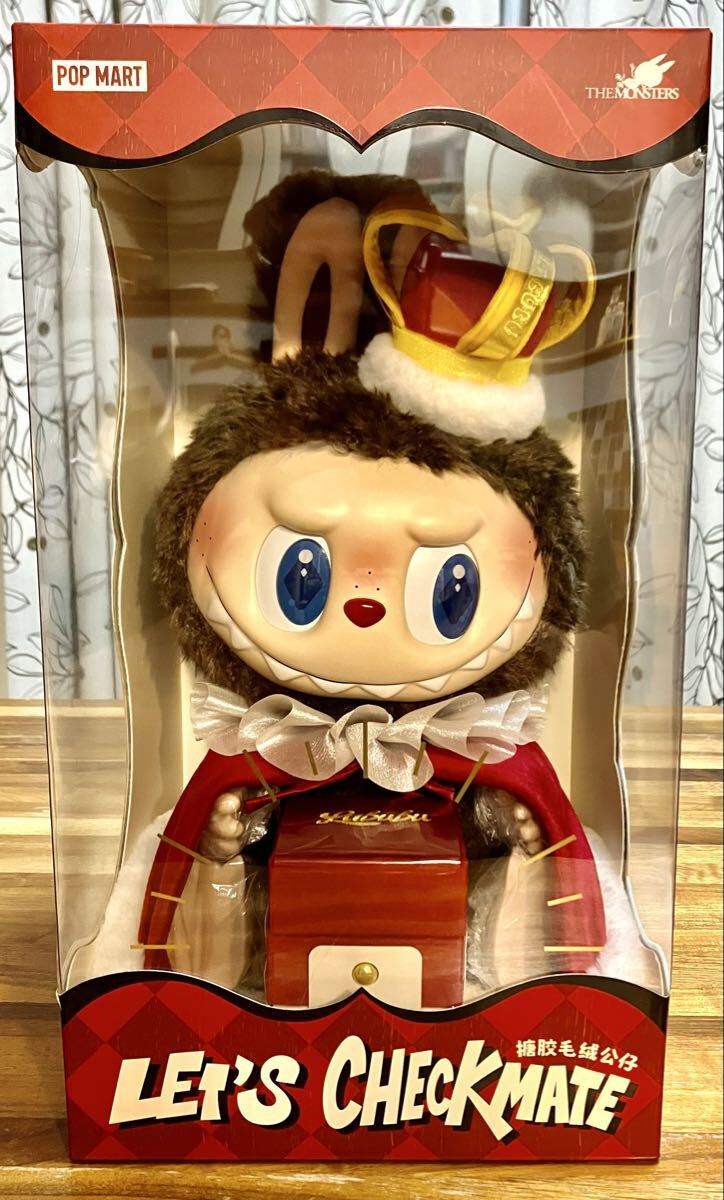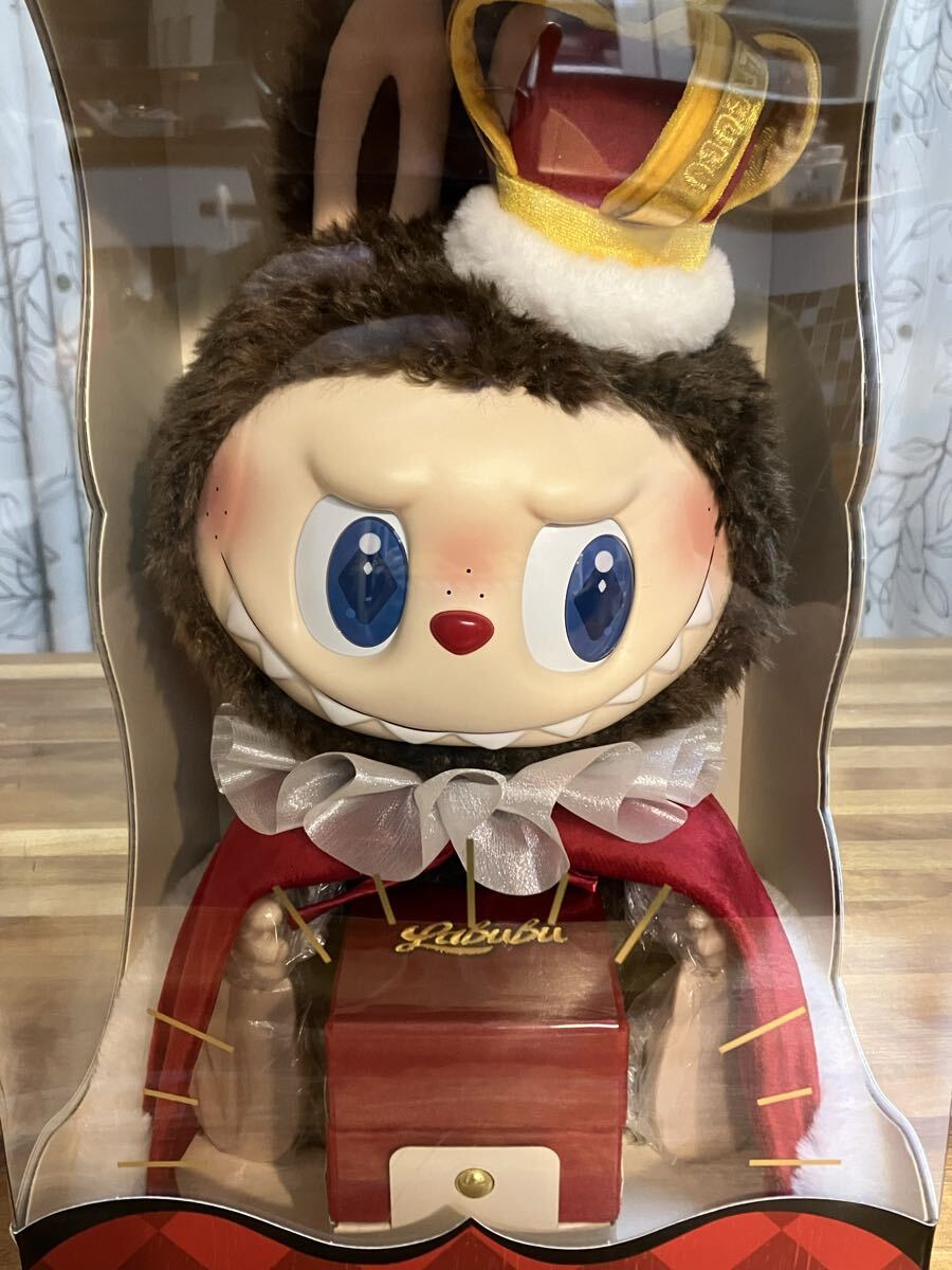 鮮やかな赤いマントと立派な王冠を持つ王様のLABUBU(ラブブ)。