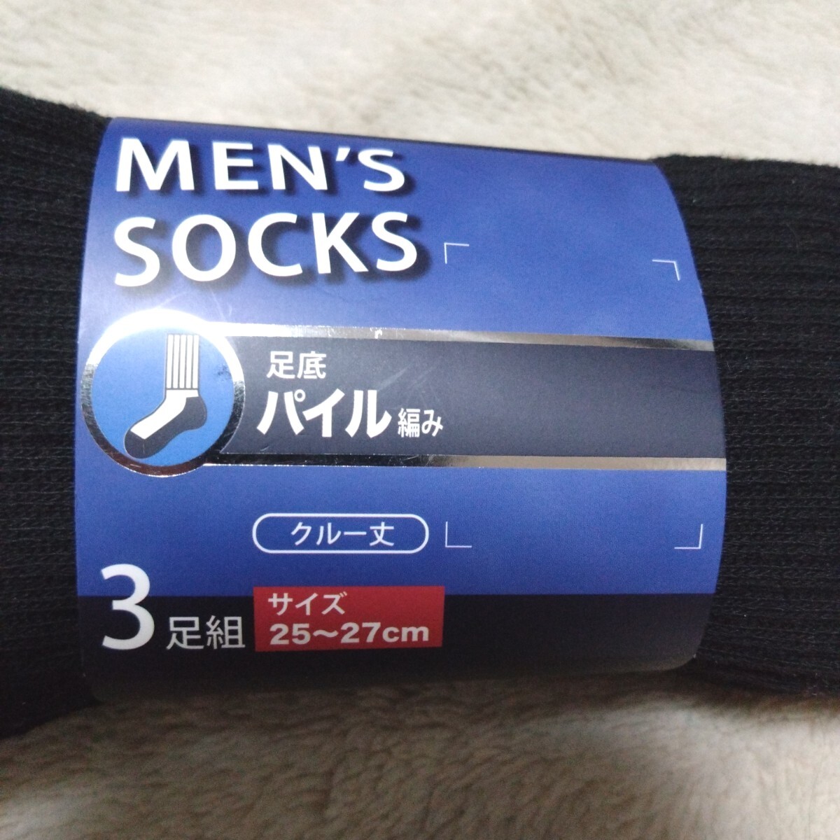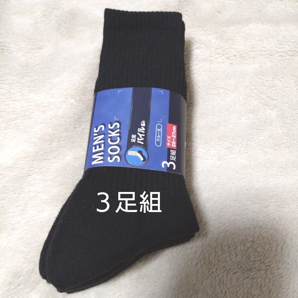 ①メンズ ソックス 3足組 サイズ25~27cm クルー丈 足底パイル編み