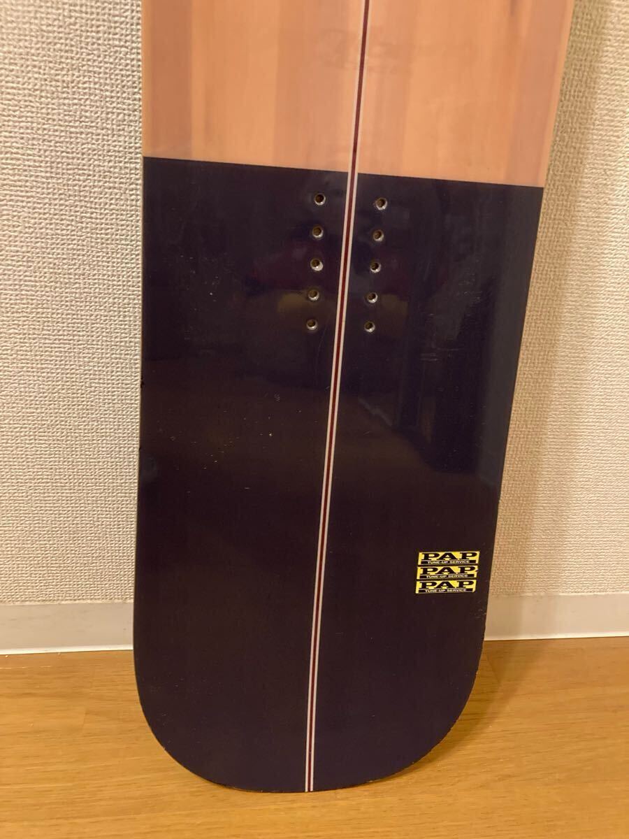 同社独自のフラットキャンバーは、パウダーでのスムースな乗り味と地形でのルースな取り回しのしやすさが大変気持ちよく、かつラインに乗せた時の伸びがある切れ味鋭いカービングは一度なれると病みつきになる乗り味を提供してくれます。 微細な傷を除いてはきれいな状態かと思います。エッジの錆もありません。