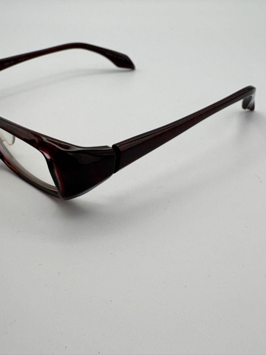 独創的なフォルム。厚さ12mmのオリジナル生地を用いたフロントシェイプは、横幅と上下幅のバランスを追求した普遍的なスクエアータイプ。生地ひけを考慮して内ネジを採用。
