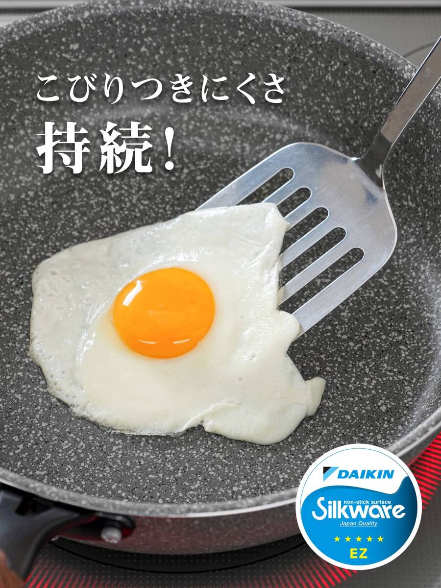 説明 商品紹介 当社製品内面コーティングランキング1位! こびりつきにくさが持続する最高峰のフライパンです。 ●記載されている注意事項をお守りください。