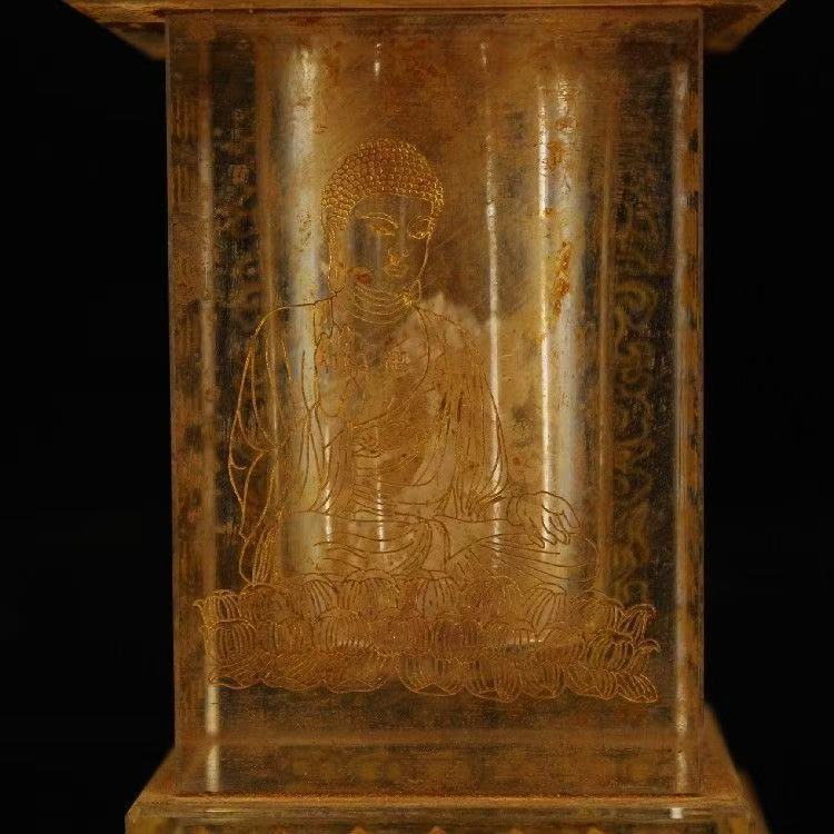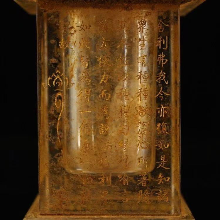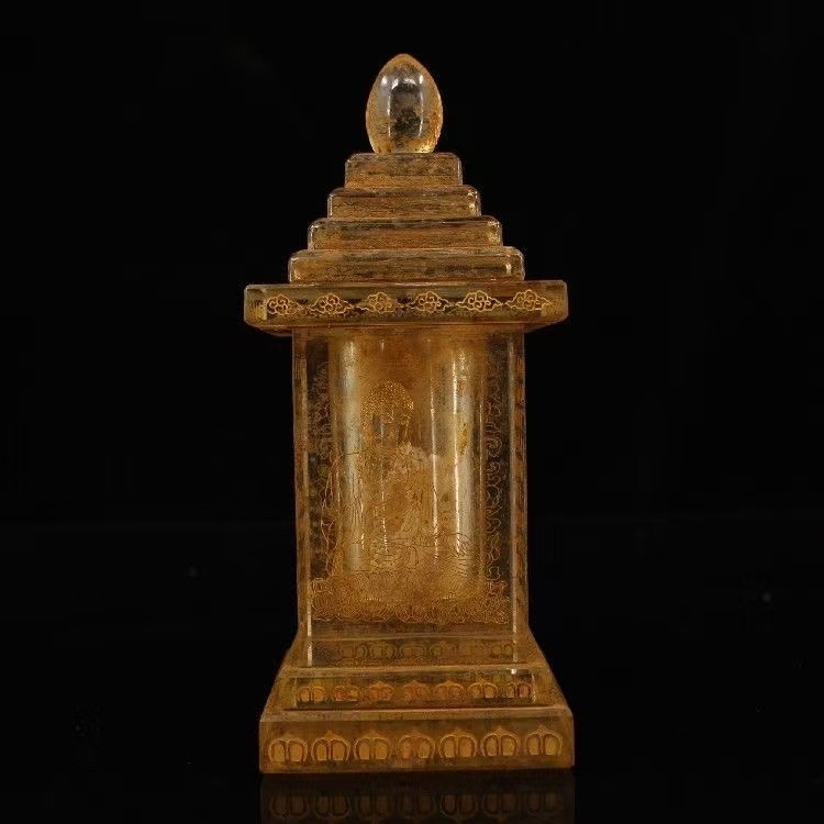 J478 旧家収蔵 極細工 時代物【水晶彫刻銘文描金方塔】東洋彫刻 旧家蔵出 置物