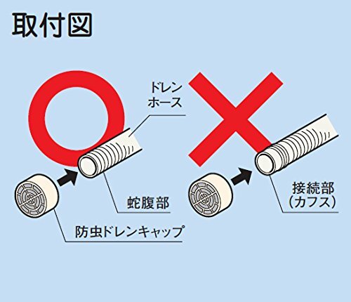 ドレンホース用防虫キャップ 【特長】 ・ドレンホースからの虫の侵入を防ぐ ・ドレンホースの蛇腹部にワンタッチで取付られる ・ドレンホースφ14、φ16兼用 ・耐候性に優れ、美観を損なわないアイボリー色。 ・適合ドレンホース:DH-14/DHQ-14、DH-16/DHQ-16