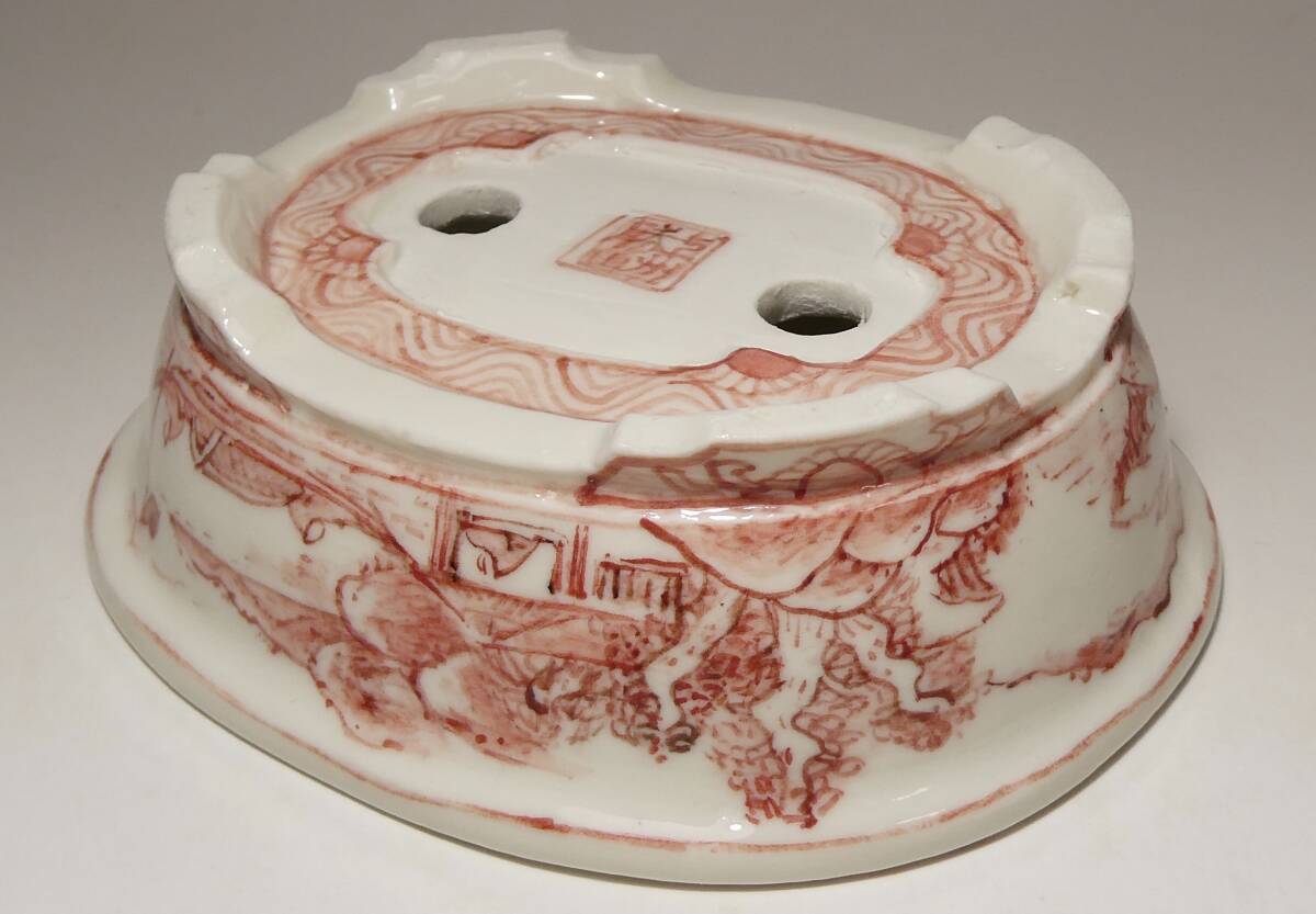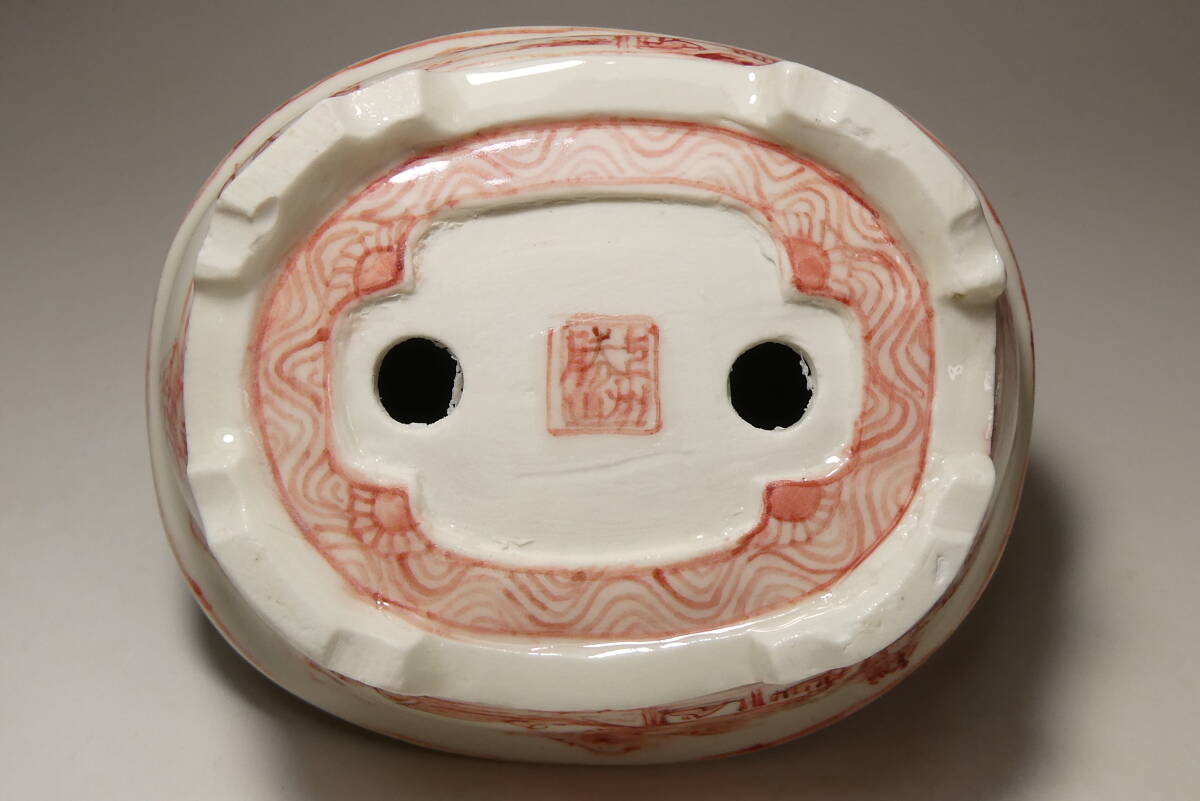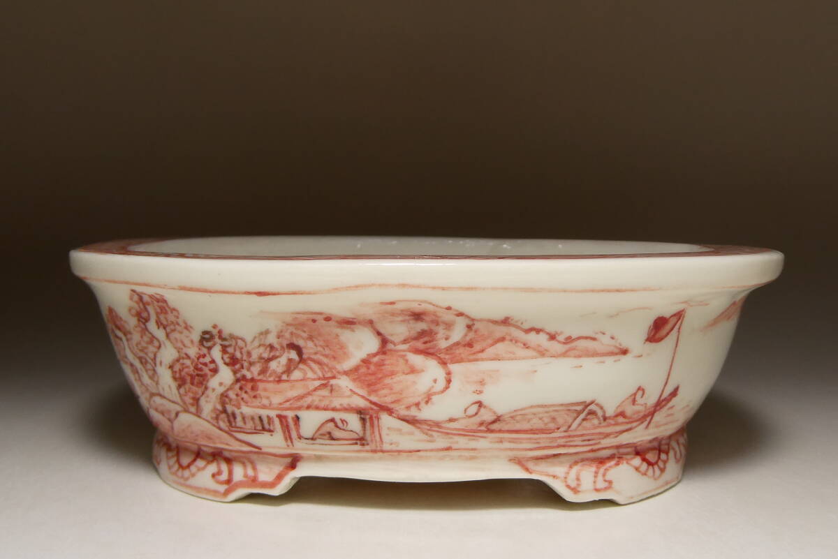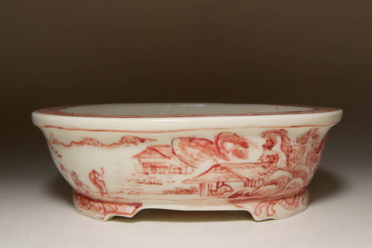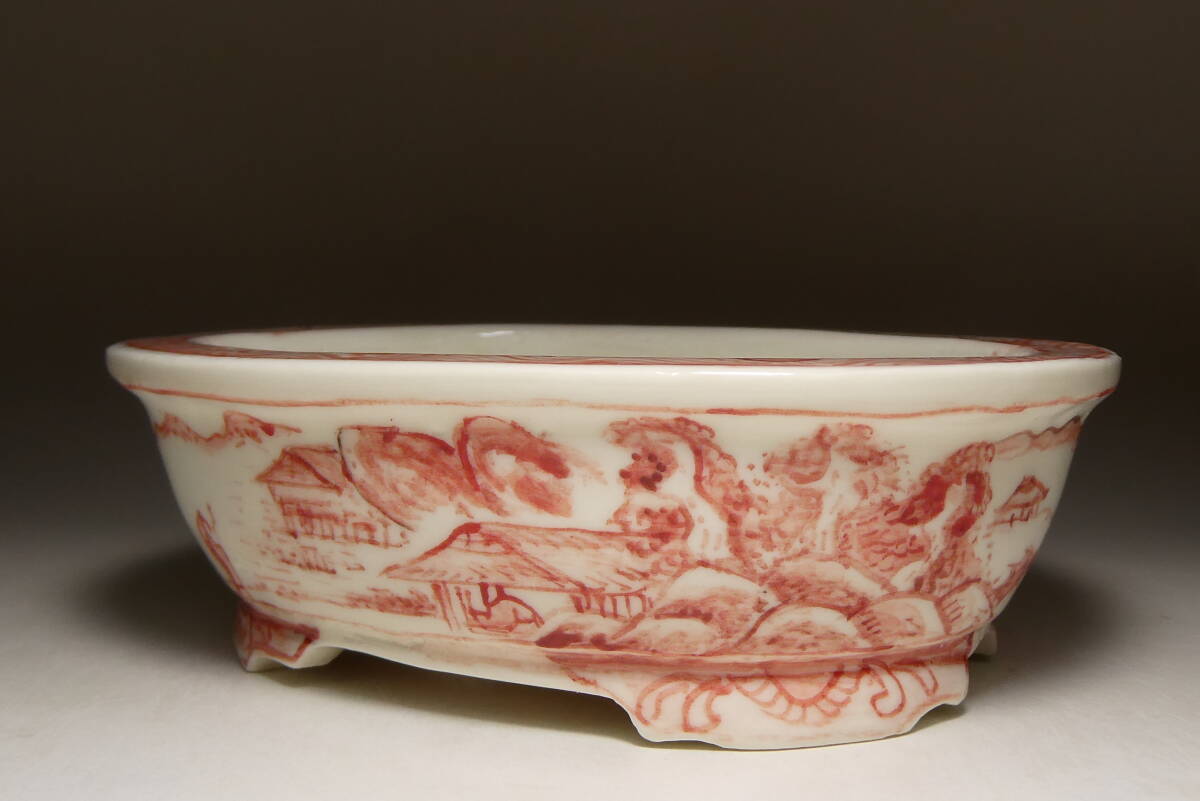 ◆上州勝山 赤絵山水図外縁楕円鉢 10.5×8.8×3.2cm の素敵な逸品です●落款:画像参照 ●未使用品