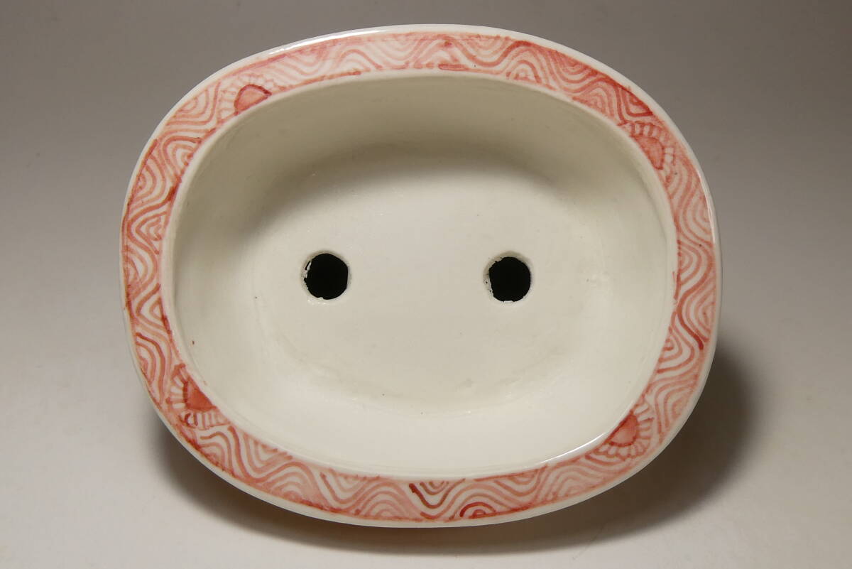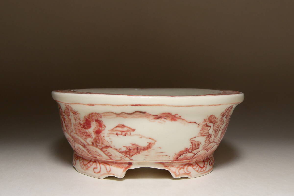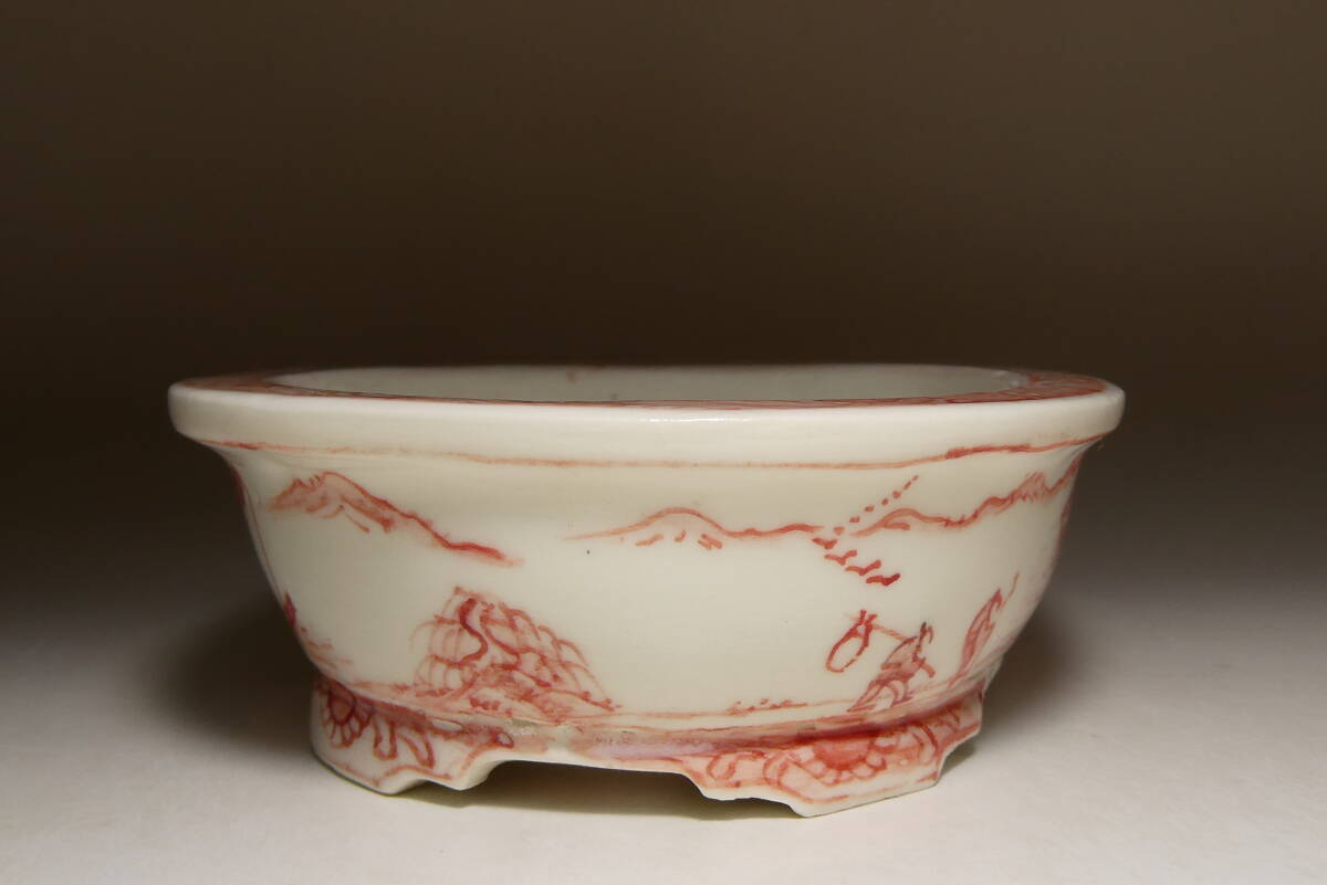 ◆上州勝山 赤絵山水図外縁楕円鉢 10.5×8.8×3.2cm ※未使用品ですが・・・