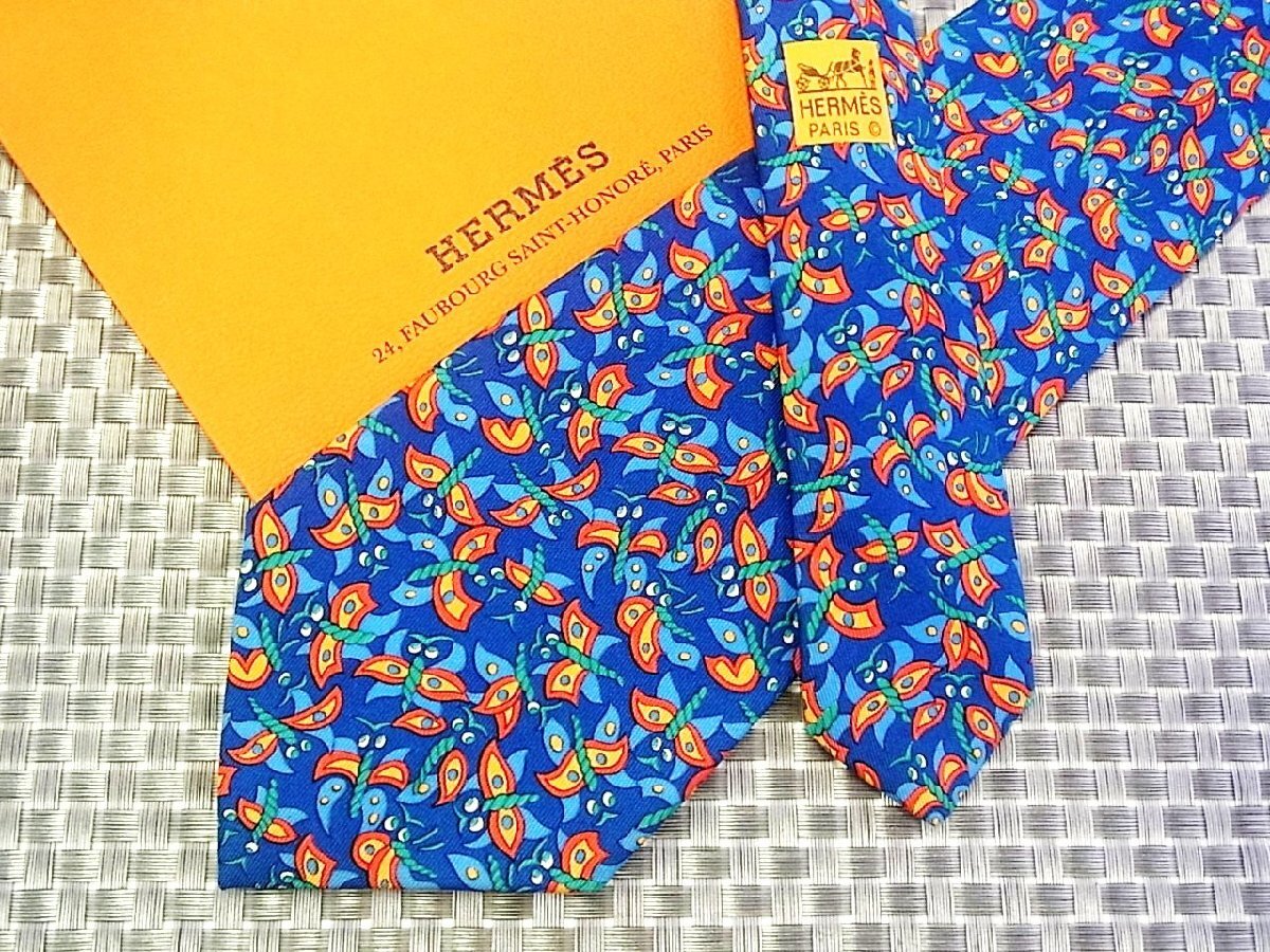 ☆40426D☆状態並品【蝶 チョウ 昆虫 柄】エルメス【HERMES】ネクタイ