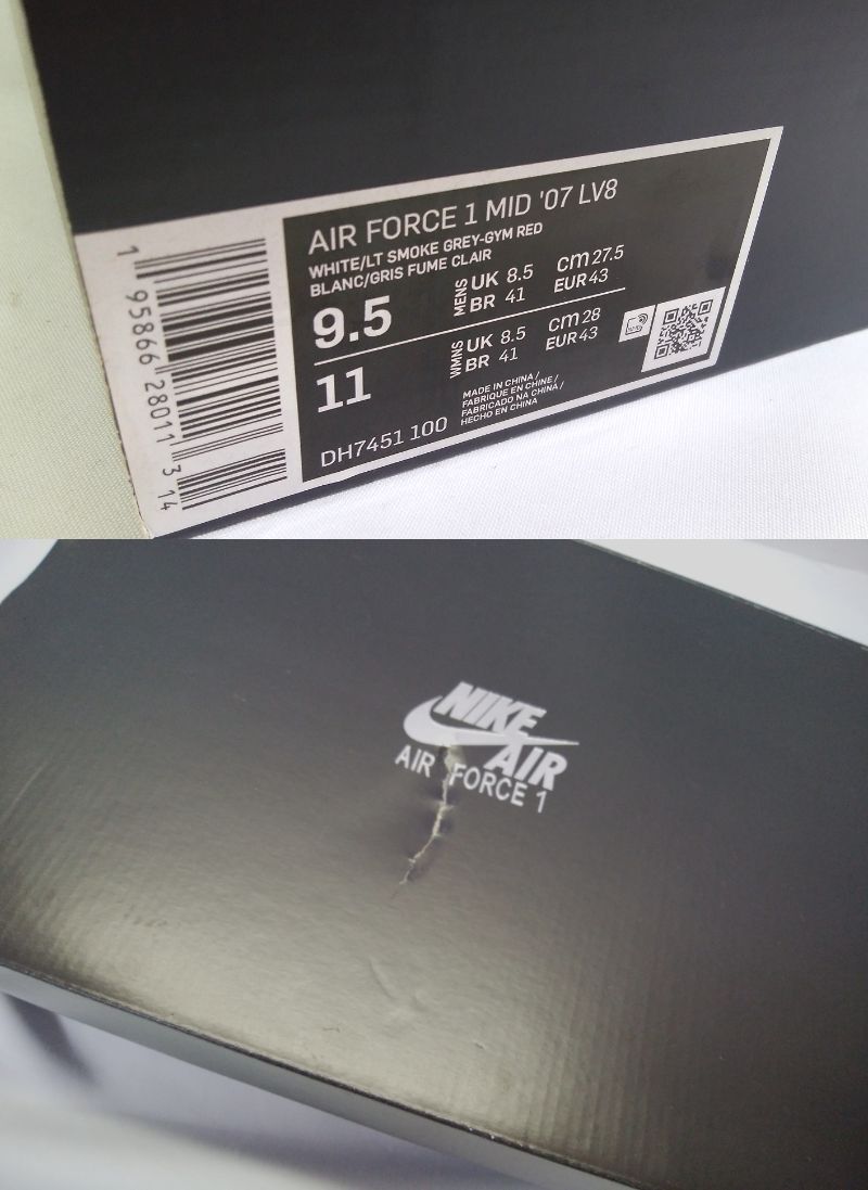◆☆P2≪ほぼ未使用≫ NIKE AIR FORCE 1 MID '07 LV8 ナイキ エアフォース1 ミッド 07 LV8 ホワイト/ジムレッド 27.5cm DH7451-100 箱付き