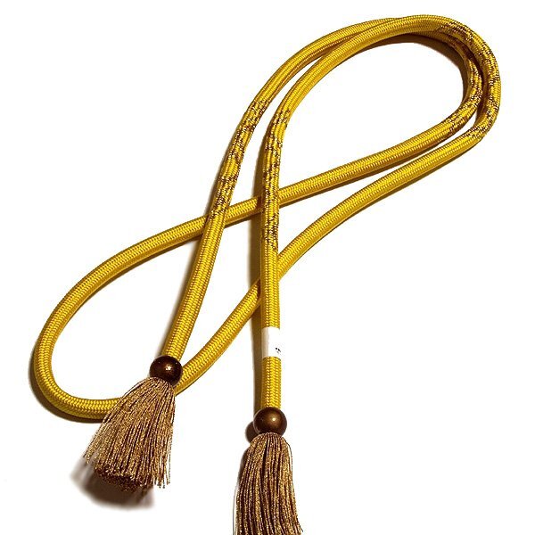 [和楽屋] ■「振袖用 正絹」縞 藤黄色 帯揚げ 飾りつき 撚り房 丸組 帯締め セット■【メール便OK】