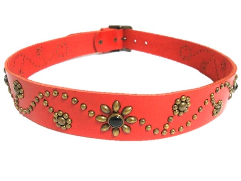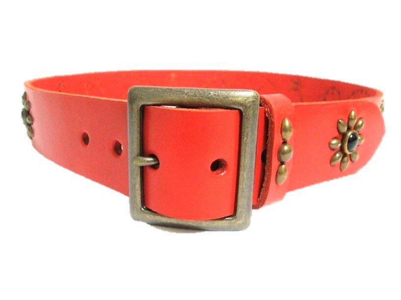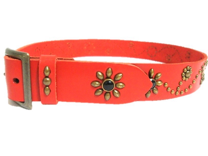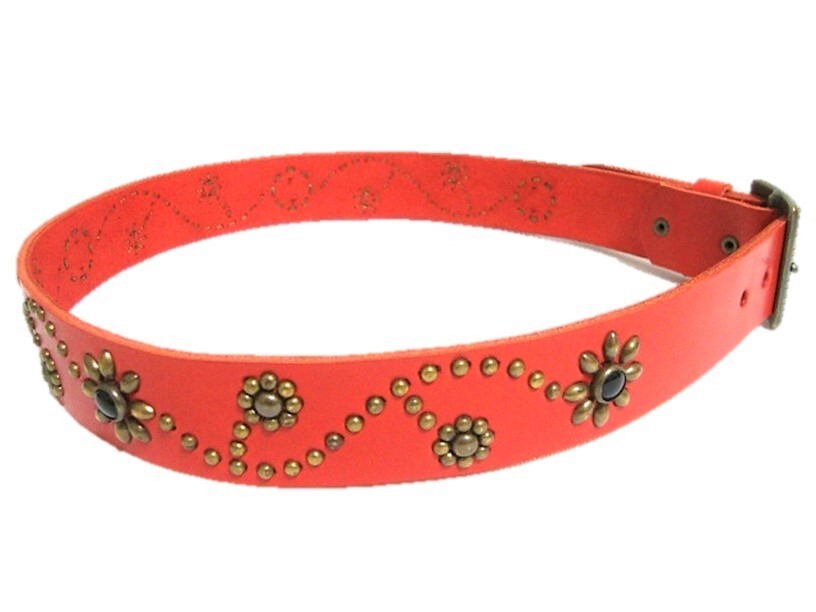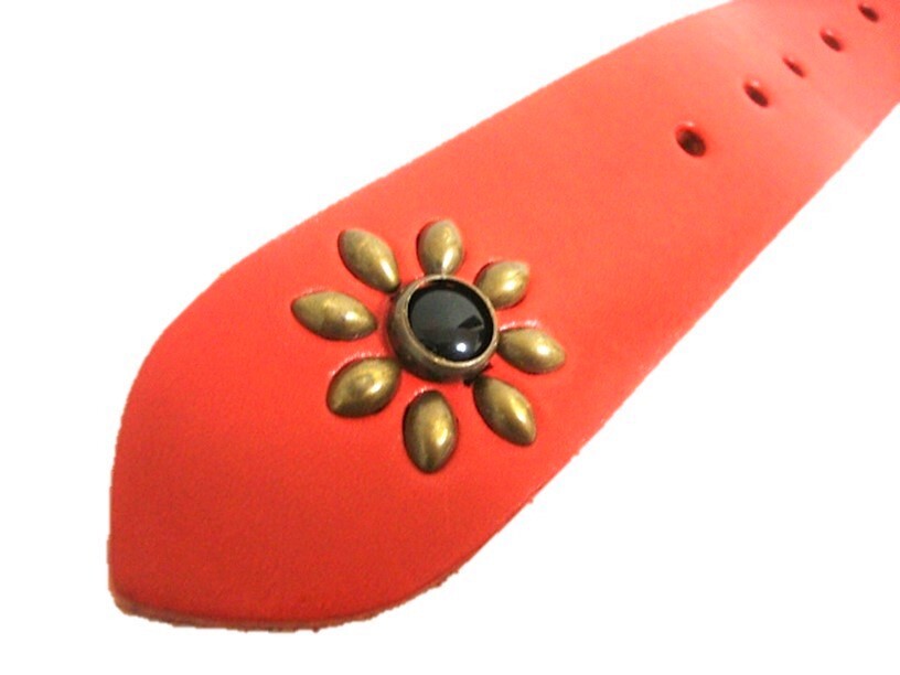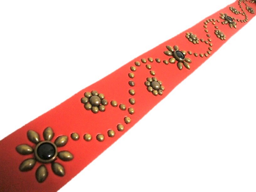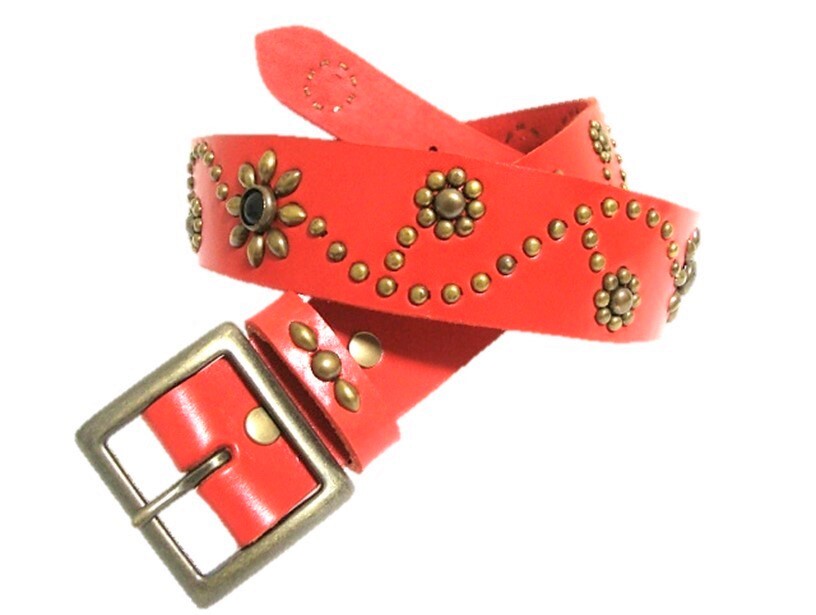 栃木レザー フラワー型スタッズベルト 赤(オニキススポッツ)ヴィンテージタイプ 40mm幅 一枚革