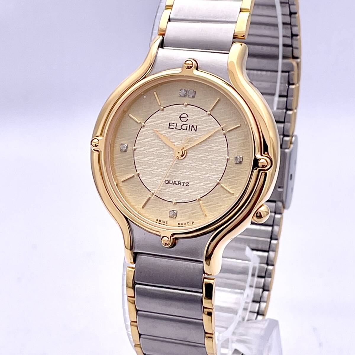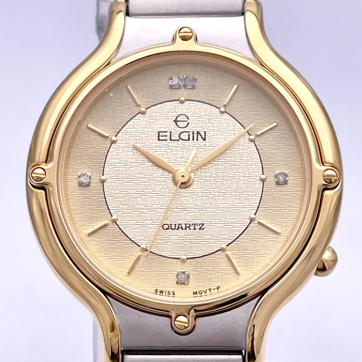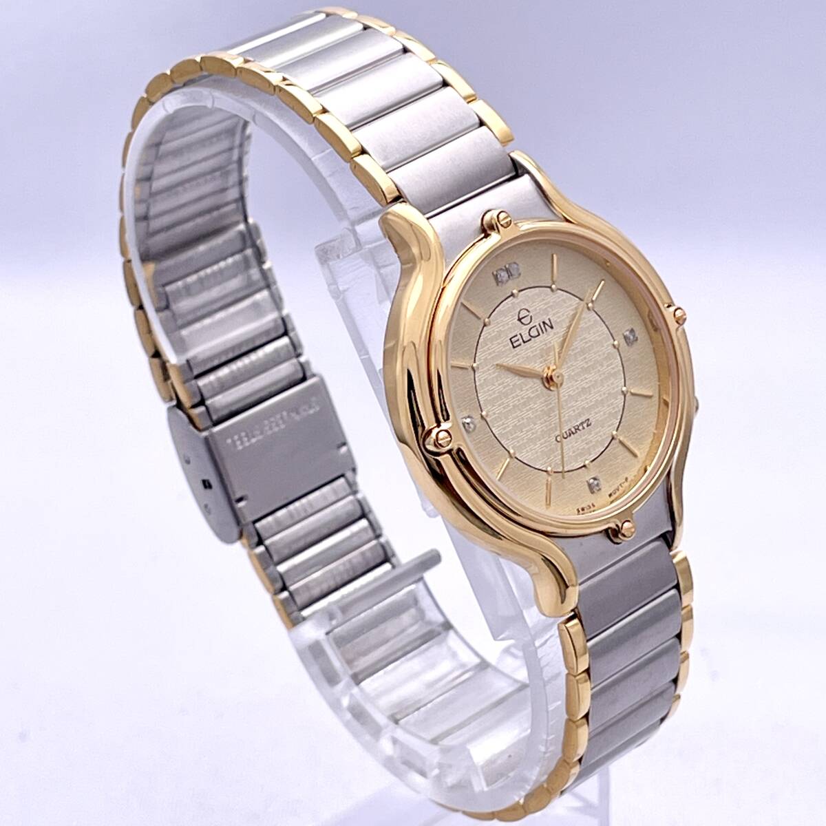 ELGIN エルジン FK-319-P 腕時計 メンズ ウォッチ クォーツ quartz ダイヤインデックス 金 ゴールド 銀 シルバー コンビ P4834