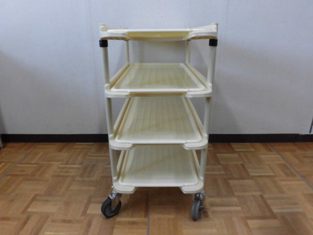 中古厨房 業務用 okamura トレイカート プラスチック 4段 ワゴン 配膳