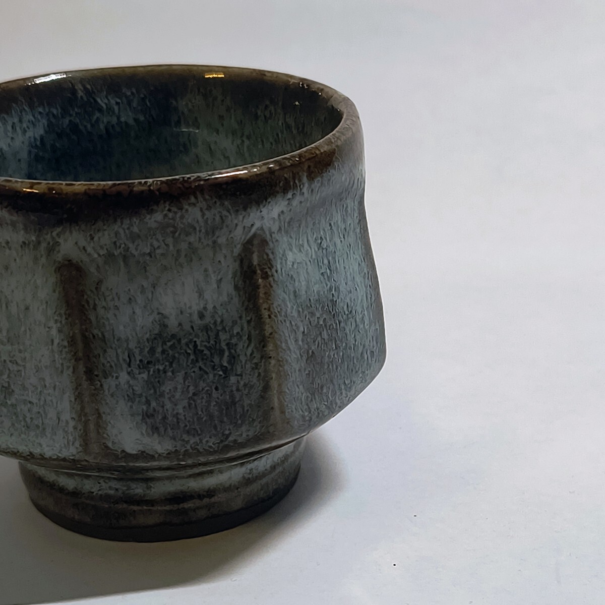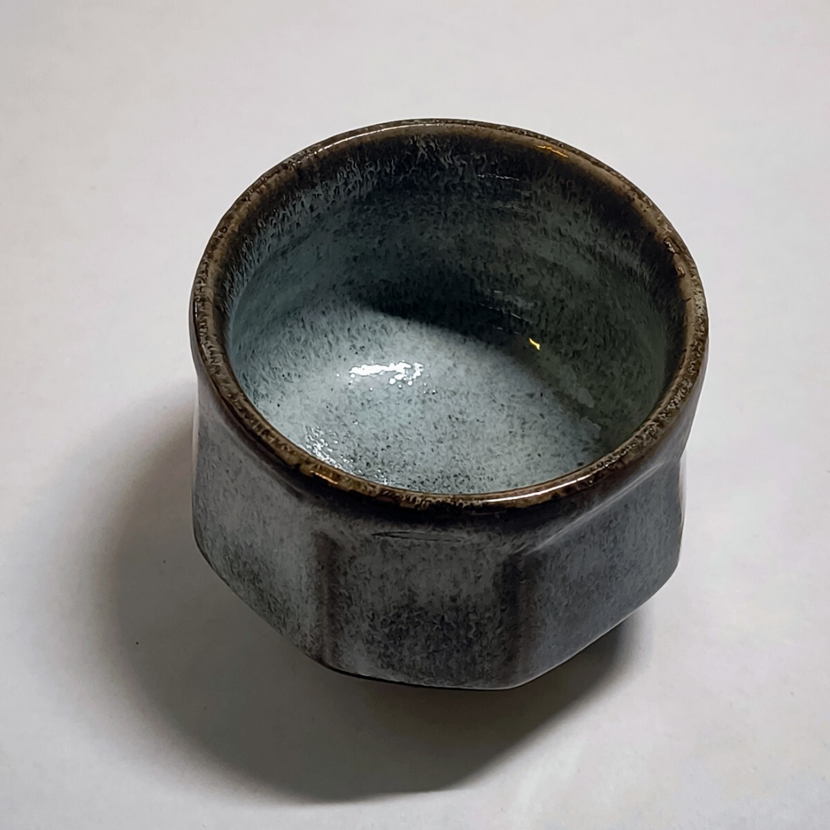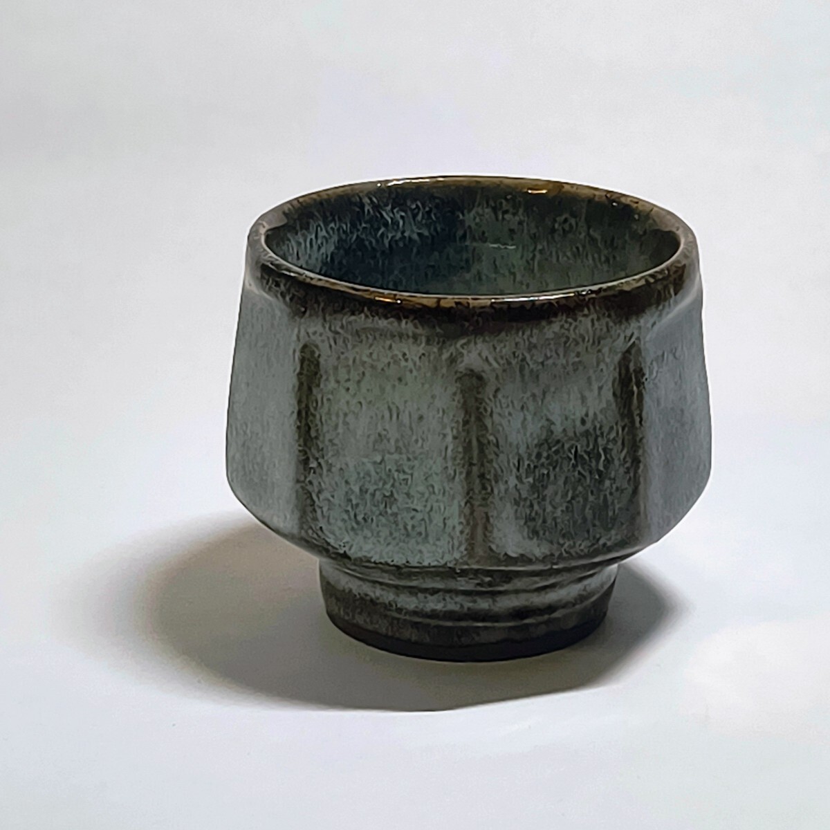 少し前の面取り湯呑です。おそらく生田和孝、生田窯のものと思いますが断定していません。海鼠釉が強く面取りに生かされているように思います。